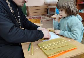 10 февраля, накануне празднования Сретения Господня, иерей Владимир Сторчак посетил специализированную школу для слабослышащих и провёл беседу с детьми о духовном значении церковной свечи в молитвенной жизни.