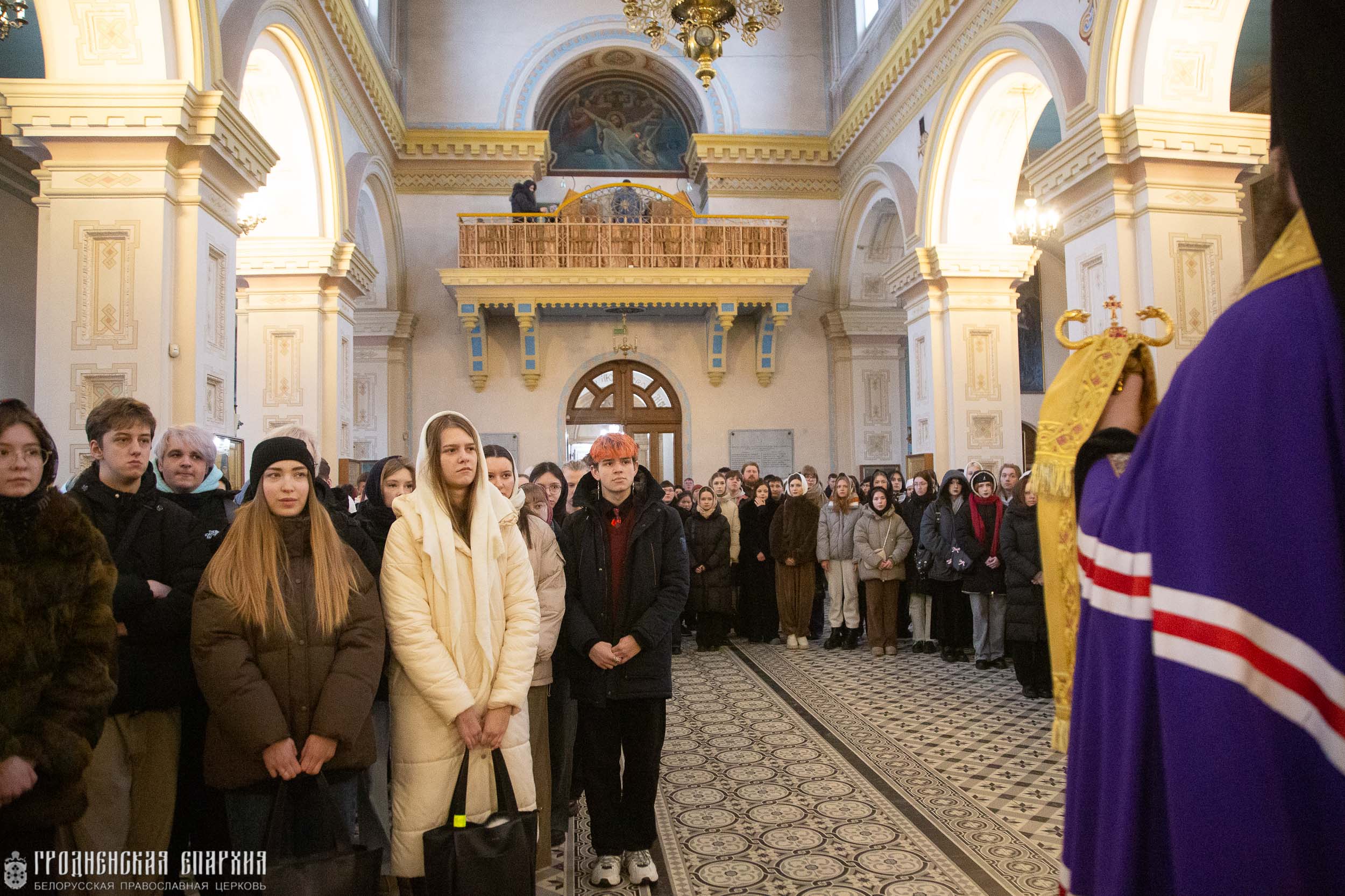 Во время совершения богослужения священнослужители вознесли молитвы «о здравии и спасении начальствующих, учащих и учащихся» в Купаловском университете. Также было провозглашено многолетие ректору, администрации, профессорско-преподавательской корпорации, работникам и студентам Гродненского государственного университета имени Янки Купалы.