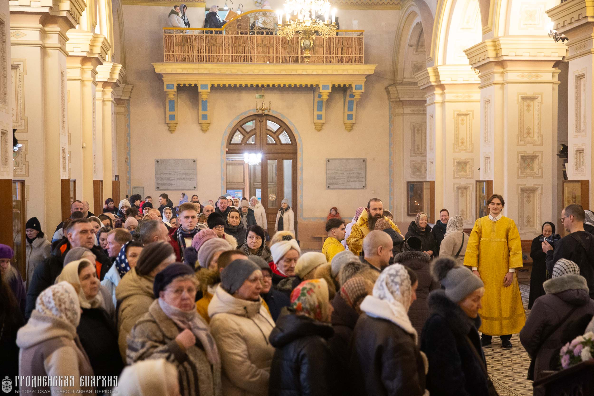 Его Высокопреосвященству сослужили: протоиерей Григорий Беляцкий, настоятель кафедрального собора Покрова Пресвятой Богородицы г. Гродно; протоиерей Андрей Бондаренко, духовник Гродненской епархии; иерей Александр Гук, руководитель отдела по церковной благотворительности и социальному служению; клирики кафедрального собора.