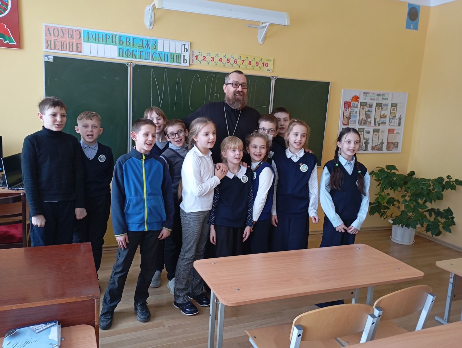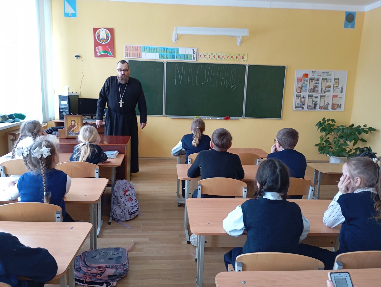 Иерей Олег Засим провел беседу о Масленице с учащимися Скрибовской средней школы Щучинского района
