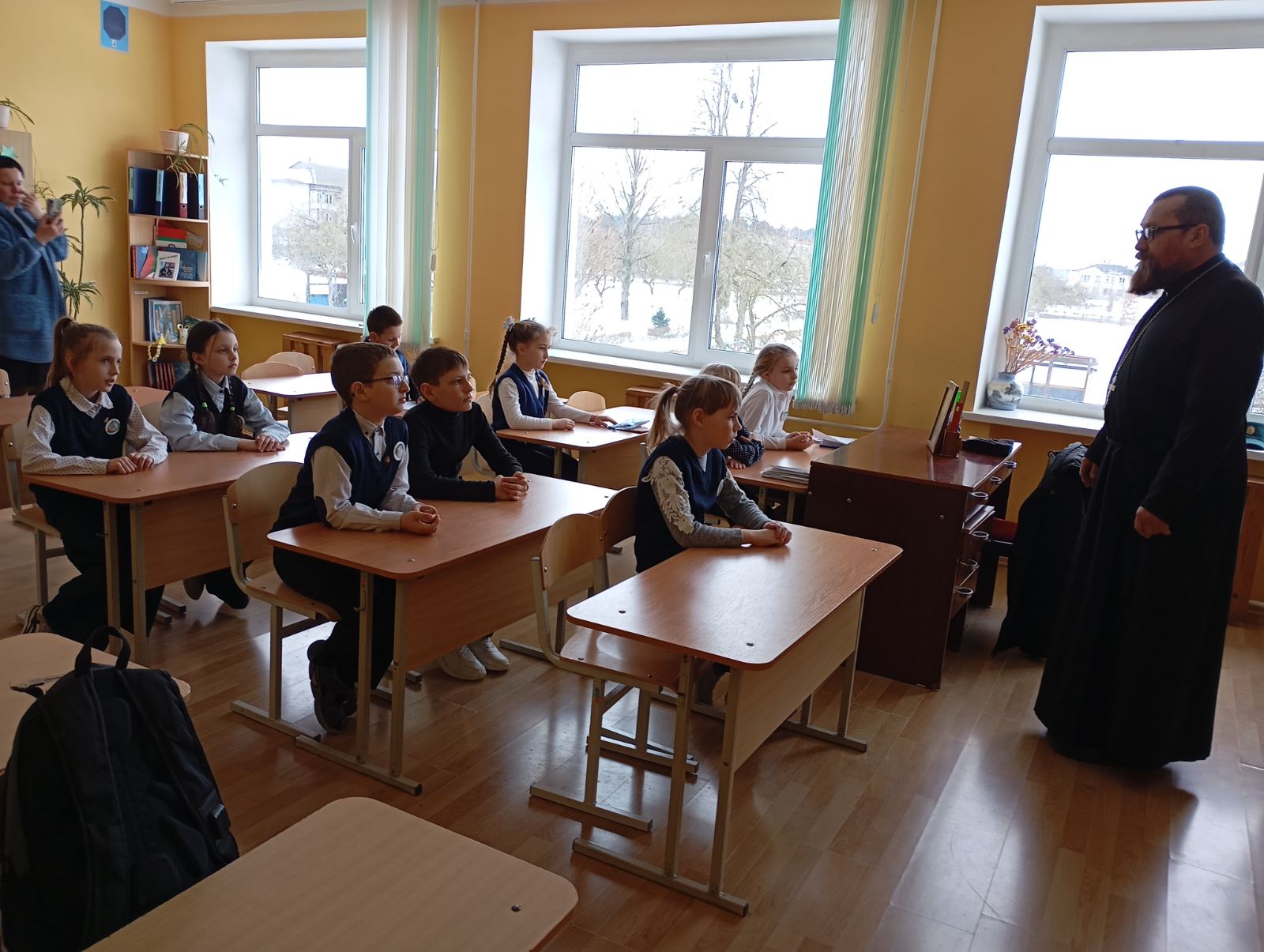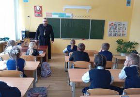 18 февраля настоятель прихода храма Рождества Пресвятой Богородицы д. Мурованка Щучинского района иерей Олег Засим провел беседу с учащимися 3–5 классов государственного учреждения образования «Скрибовская средняя школа».