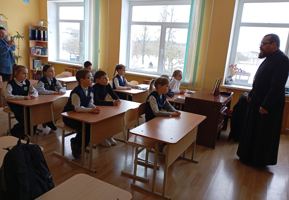 В ходе беседы на тему «Масленица» священник рассказал учащимся о том, что Сырная (мясопустная) седмица в богослужебных текстах именуется «преддверием Божественного покаяния» и «светлым предпразднством воздержания». Иерей Олег привел слова святителя Тихона Задонского, который наставлял христиан в эту седмицу поступать воздержаннее, нежели в предшествовавшие дни.