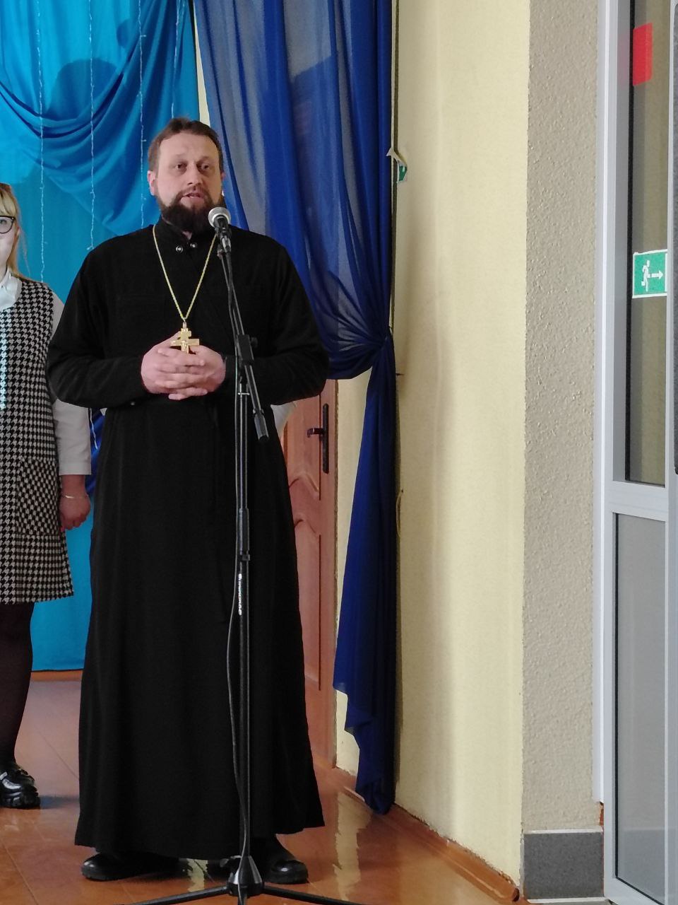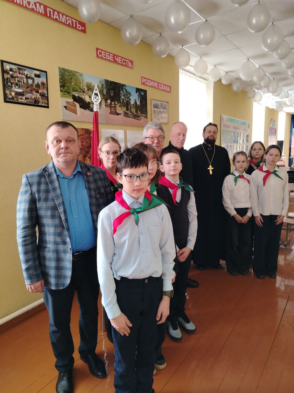 К участникам собирания обратился настоятель прихода храма святой праведной Софии Слуцкой г. Мосты иерей Иоанн Авсиевич. Священнослужитель отметил важность защиты Отечества, сохранения мира и верности Родине как долга каждого гражданина.