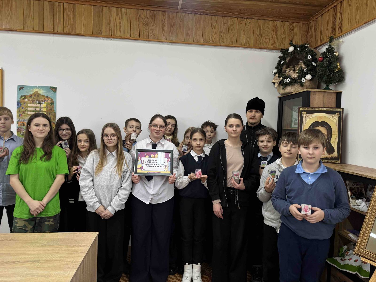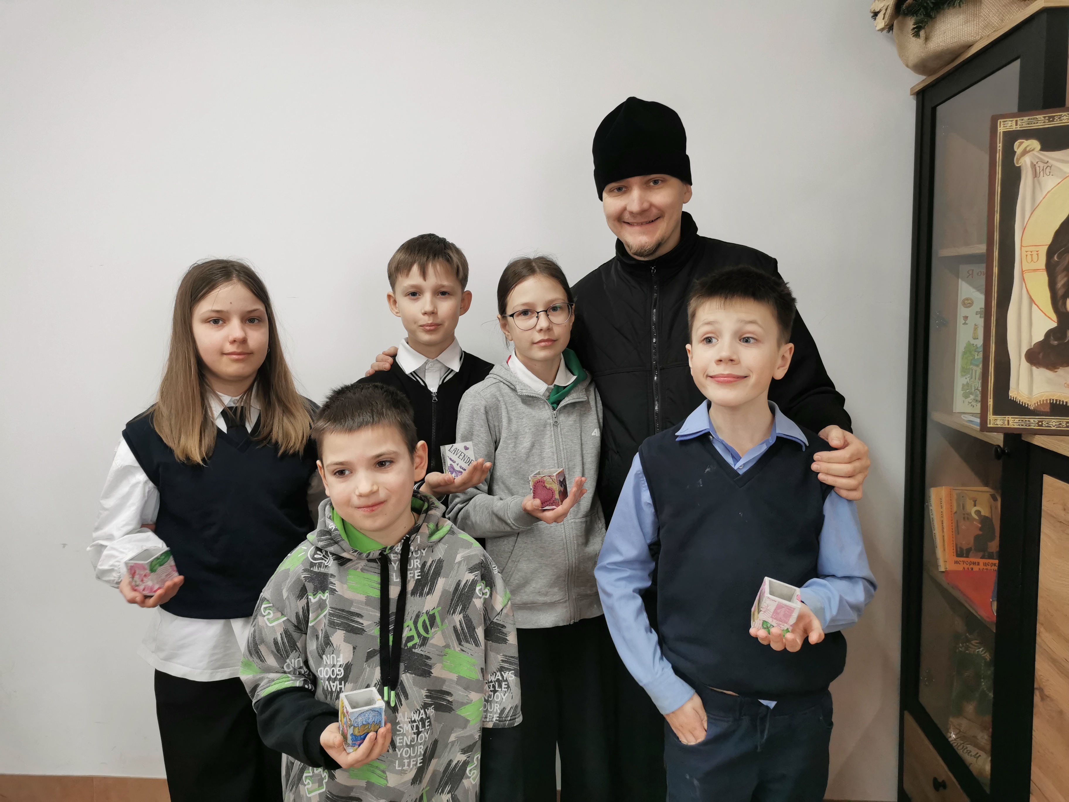 В рамках встречи в здании приходского дома для учеников воскресной школы и учащихся 5 класса состоялся мастер-класс «Творим добро руками». Его провели члены творческой команды проекта «3Д: добрые мысли, добрые слова, добрые дела».