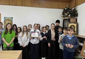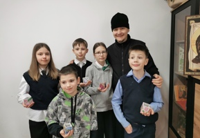 Настоятель храма иерей Георгий Скорб рассказал ребятам устройство православного храма, познакомил с богослужебными предметами и книгами церкви, рассказал о Великом посте.