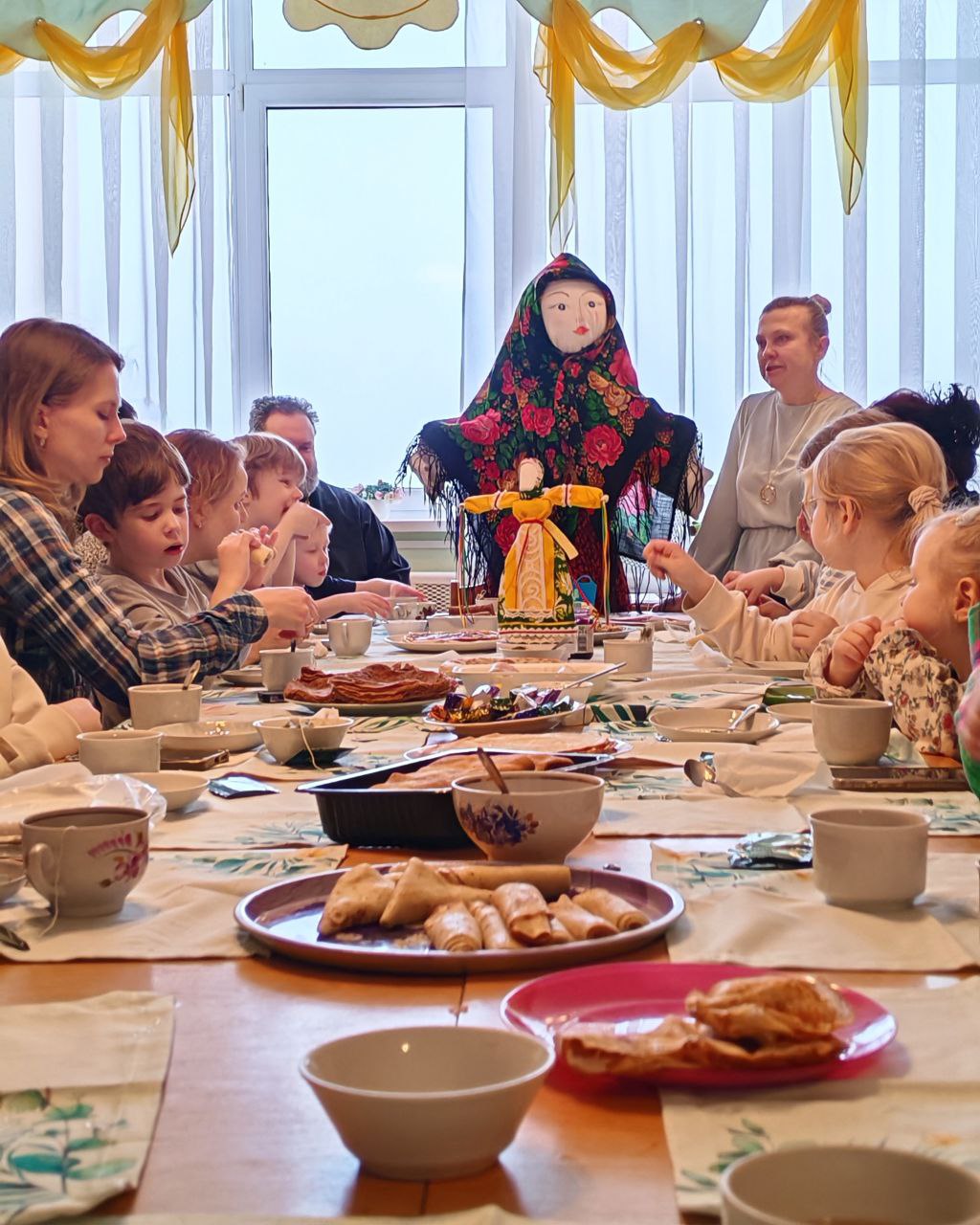 Родители и дети с огромным желанием участвовали в играх-забавах и конкурсах, пели песни и угощались блинами. Встреча прошла в теплой и доброжелательной атмосфере.