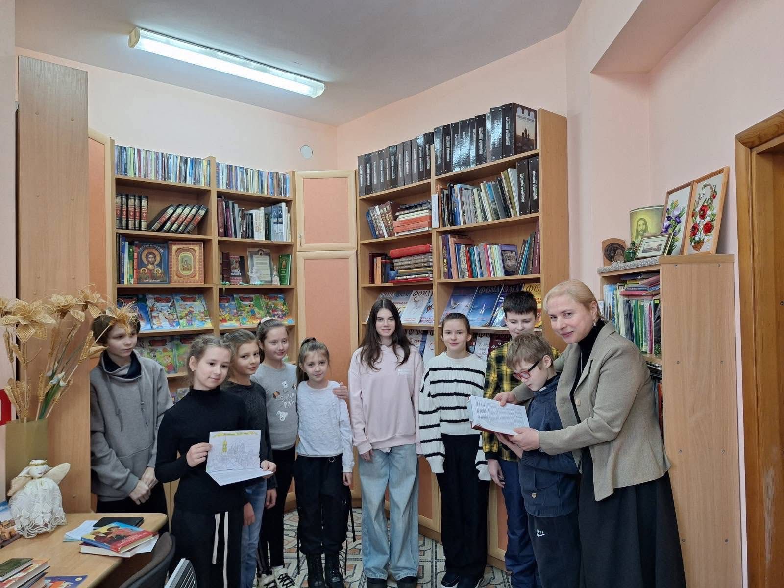 В ходе встречи детям рассказали об истории книги, о том, что первые славянские книги были рукописными и создавались в монастырях. Особый интерес у ребят вызвал обзор книг православных авторов: Бориса Ганаго, Юлии Вознесенской, Лидии Чарской, а также сборников «Библейские рассказы для детей», «Рассказы о православных святых» и «Цветы для Спасителя».