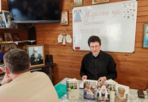 Мероприятие для прихожан провел настоятель храма протоиерей Евгений Павельчук. Священнослужитель рассказал о родословной Святейшего Патриарха, о жизненном пути его родных — иерея Василия Степановича Гундяева (дедушки) и иерея Михаила Васильевича Гундяева (отца), а также об обстановке, в которой происходило духовное становление будущего Предстоятеля.