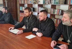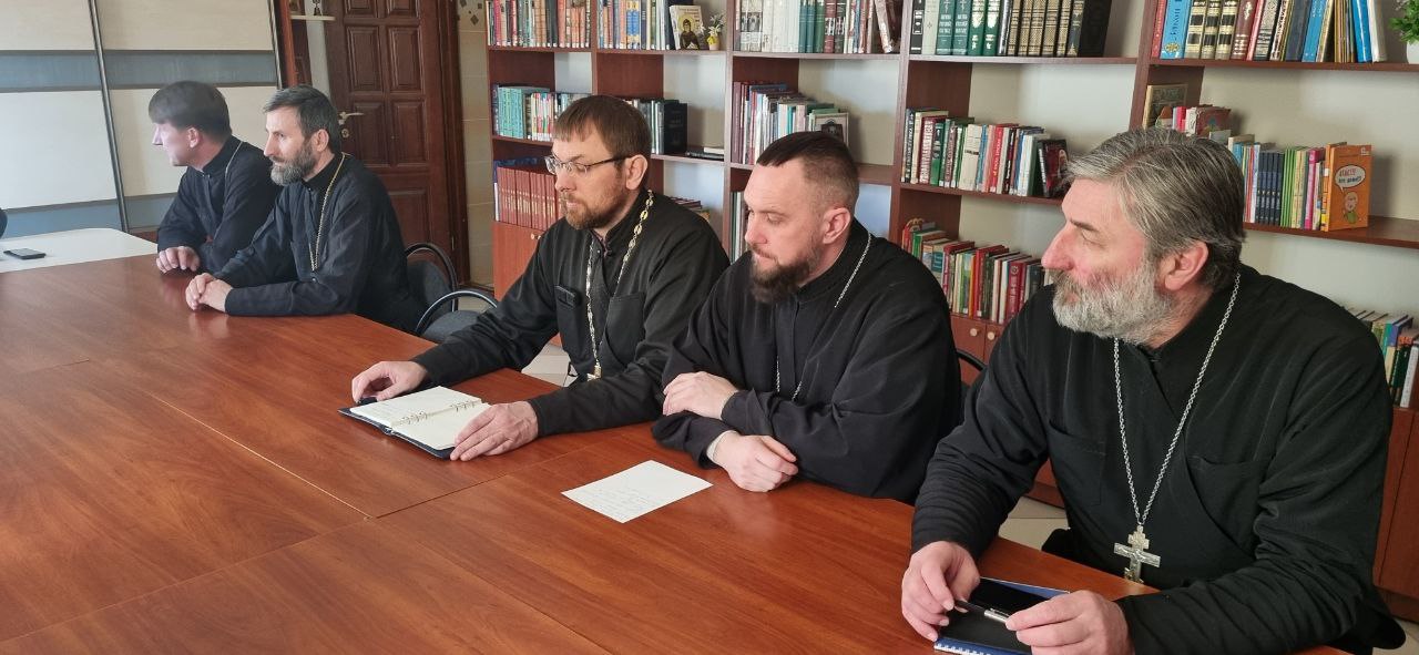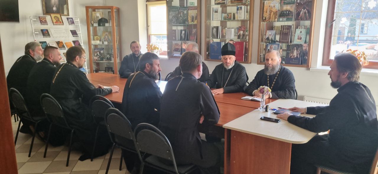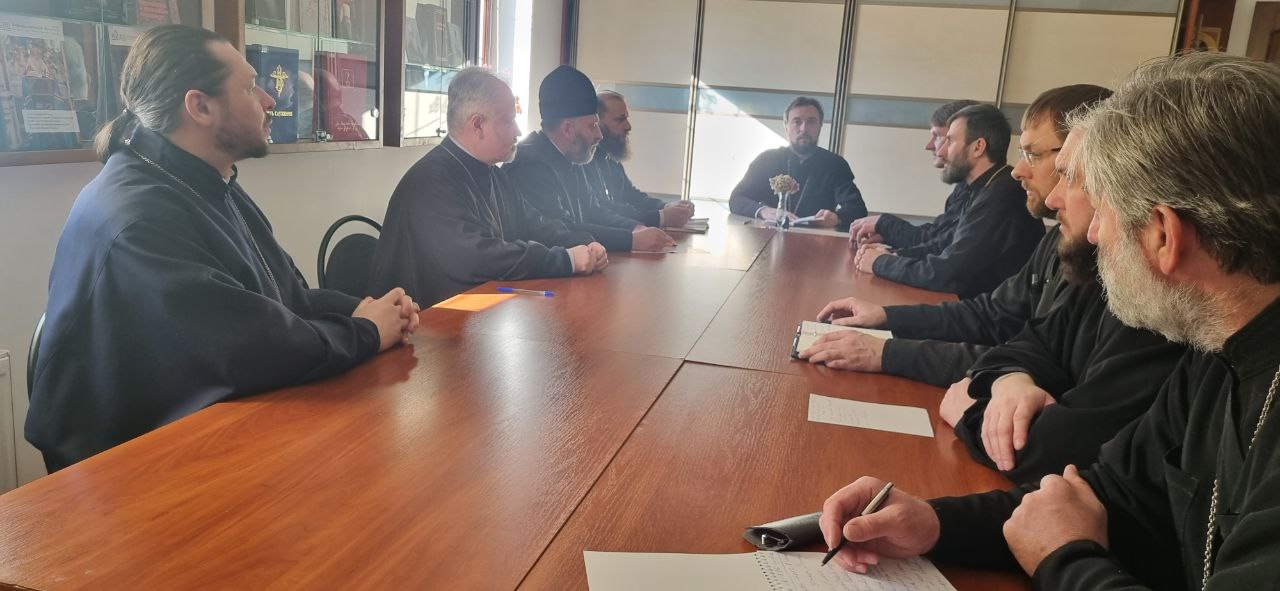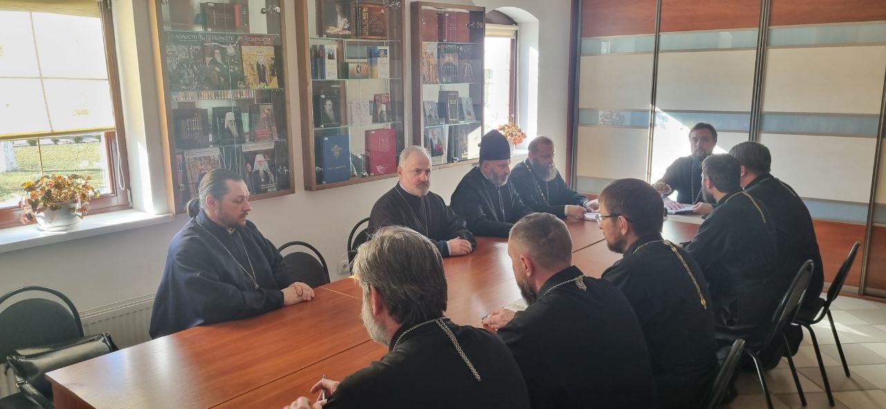 Были рассмотрены вопросы подготовки абитуриентов для поступления в Минскую духовную семинарию, а также намечены мероприятия, приуроченные ко Дню православной книги (14 марта).