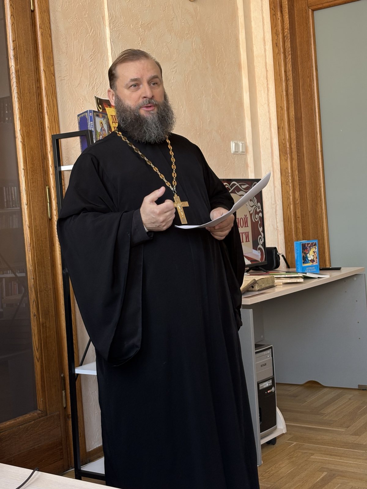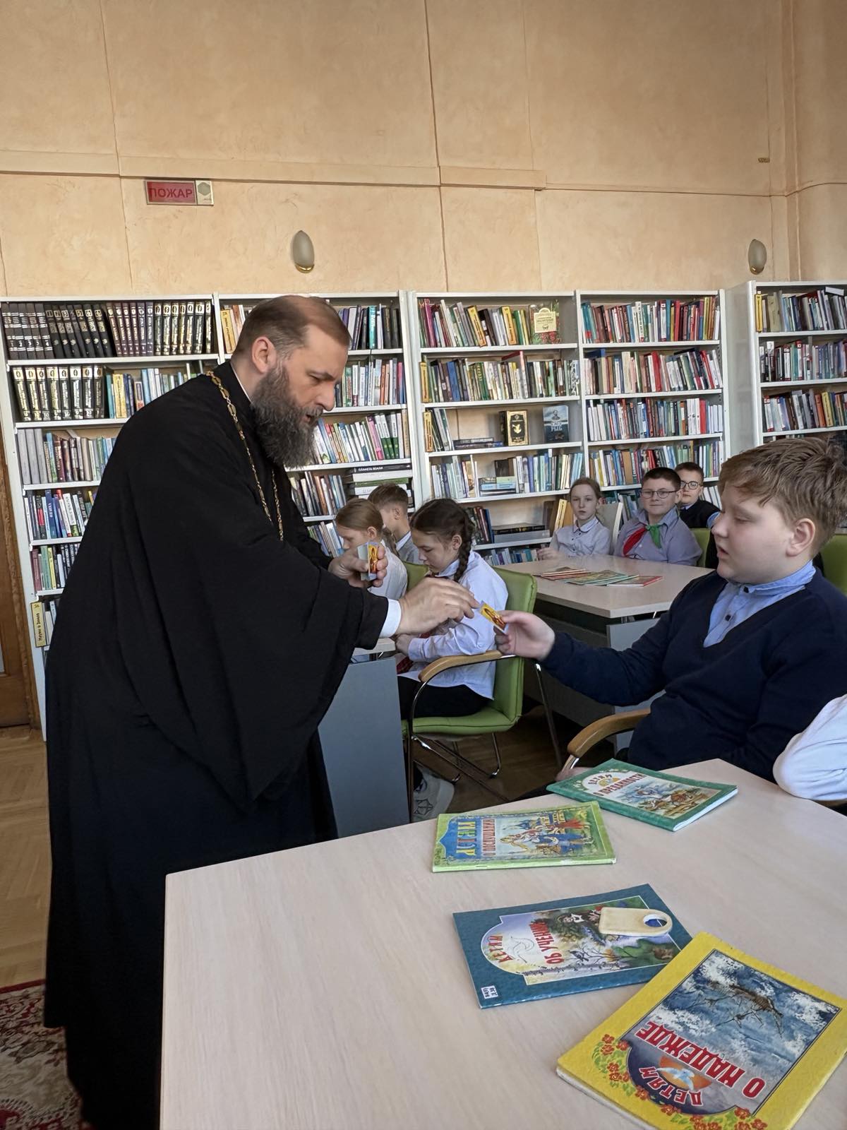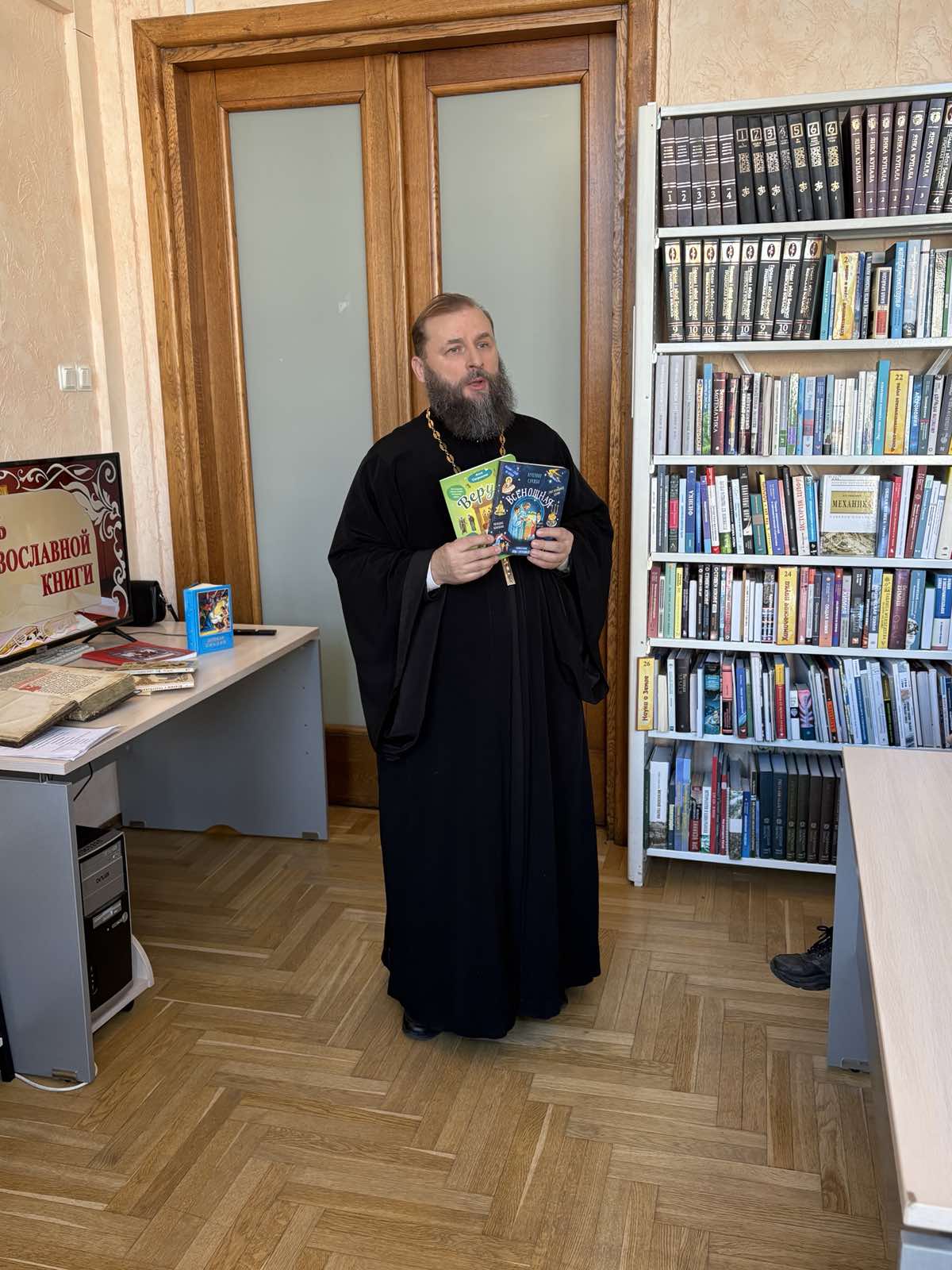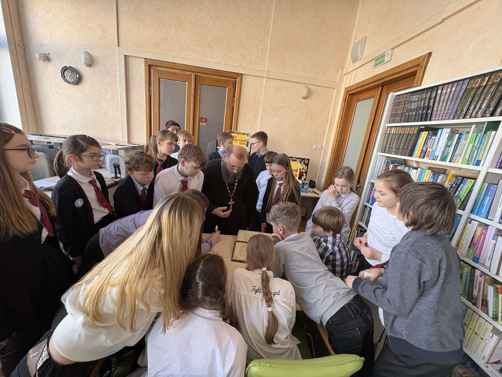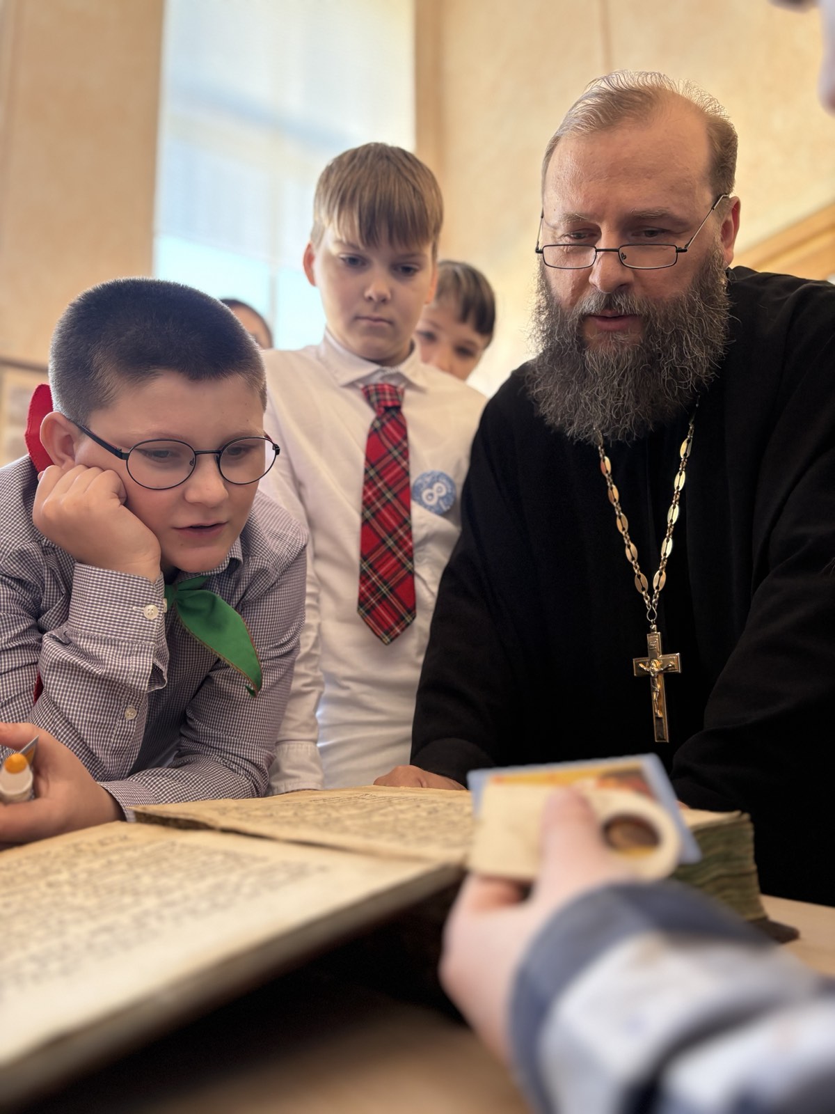 В ходе беседы была затронута тема связи времен и преемственности духовного опыта, передаваемого через книгу. Протоиерей Владимир объяснил школьникам, почему православная книга остается актуальной в современном мире как источник мудрости и добра.