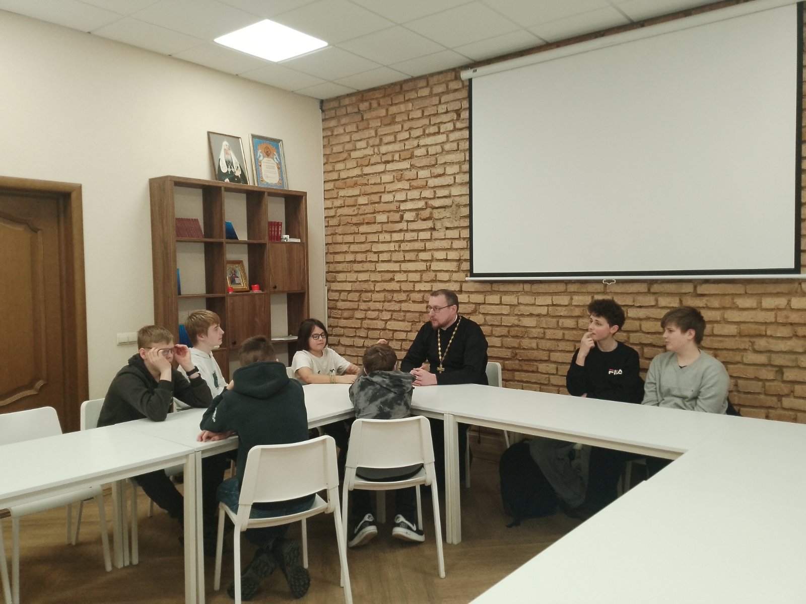 Клирик собора иерей Александр Гук рассказал участникам о православной антропологии и практике поста как средства исцеления человека от греховных страстей. В ходе беседы ребята определили для себя возможные духовные подвиги, которые они могли бы понести в дни Великого поста.