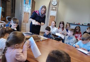 Ребята узнали о значении православной книги в жизни христианина и о том, как через книги передаются вера, молитва и богослужебная традиция из поколения в поколение. Особый интерес у детей вызвала демонстрация старинных богослужебных изданий: юные читатели смогли увидеть особенности оформления древних книг, шрифтов и декора, а также прочитать фрагменты текста на церковнославянском языке.
