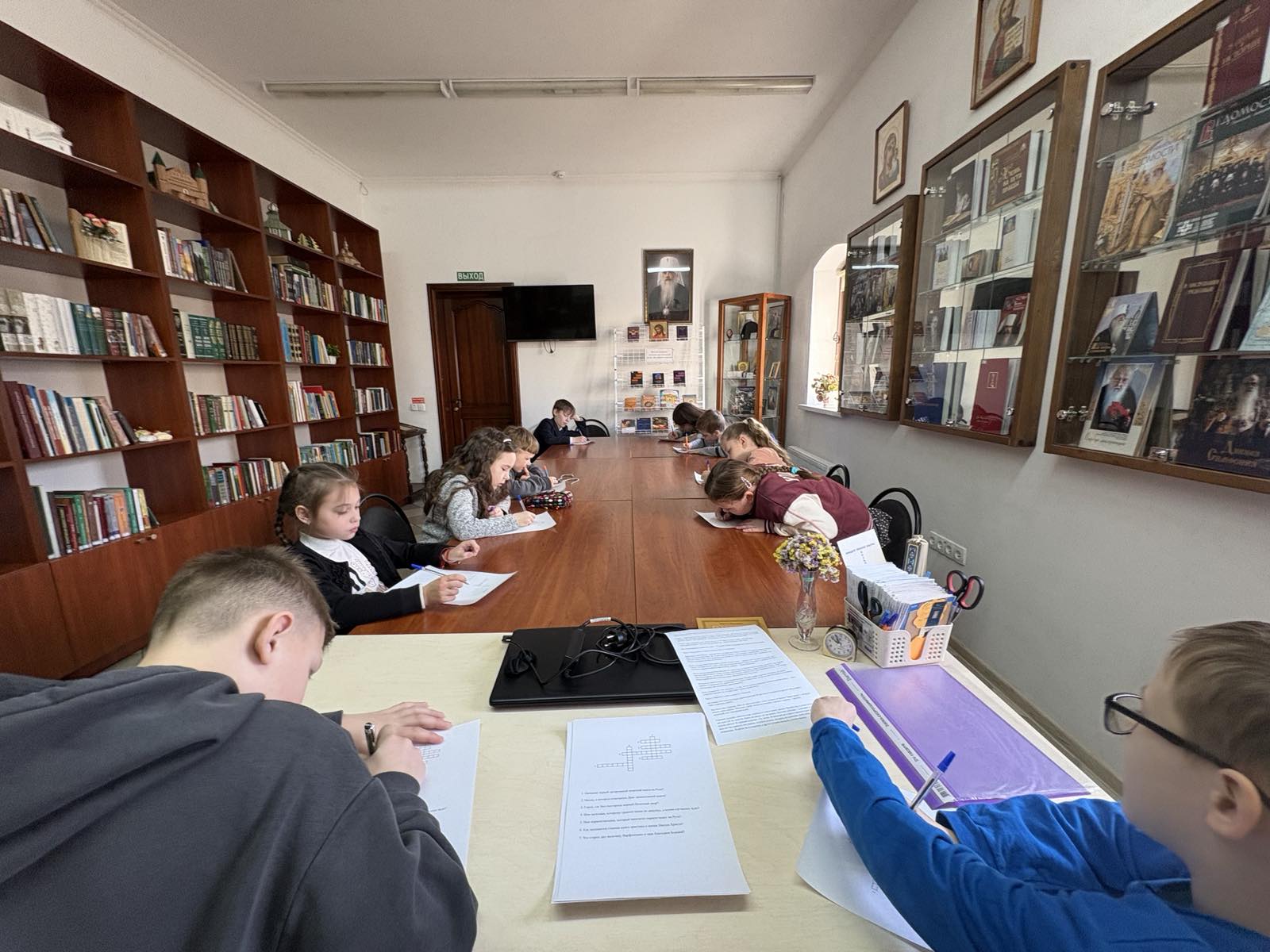 Особый интерес у ребят вызвала практическая часть мероприятия, в ходе которой им было предложено разгадать тематический кроссворд по истории православной книги. Воспитанники воскресной школы успешно справились с заданиями, проявив смекалку и полученные знания.