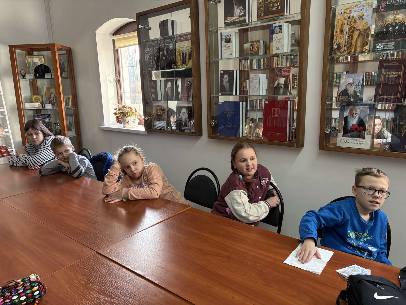 Встречу провела заведующая приходской библиотекой Юлия Игоревна Кондратюк, которая рассказала юным читателям об истории книгопечатания на Руси, отметив подвиг первопечатника диакона Ивана Федорова. В доступной для детей форме гостья объяснила отличие духовной литературы от светской, ее значение в жизни христианина и важность бережного отношения к книге.