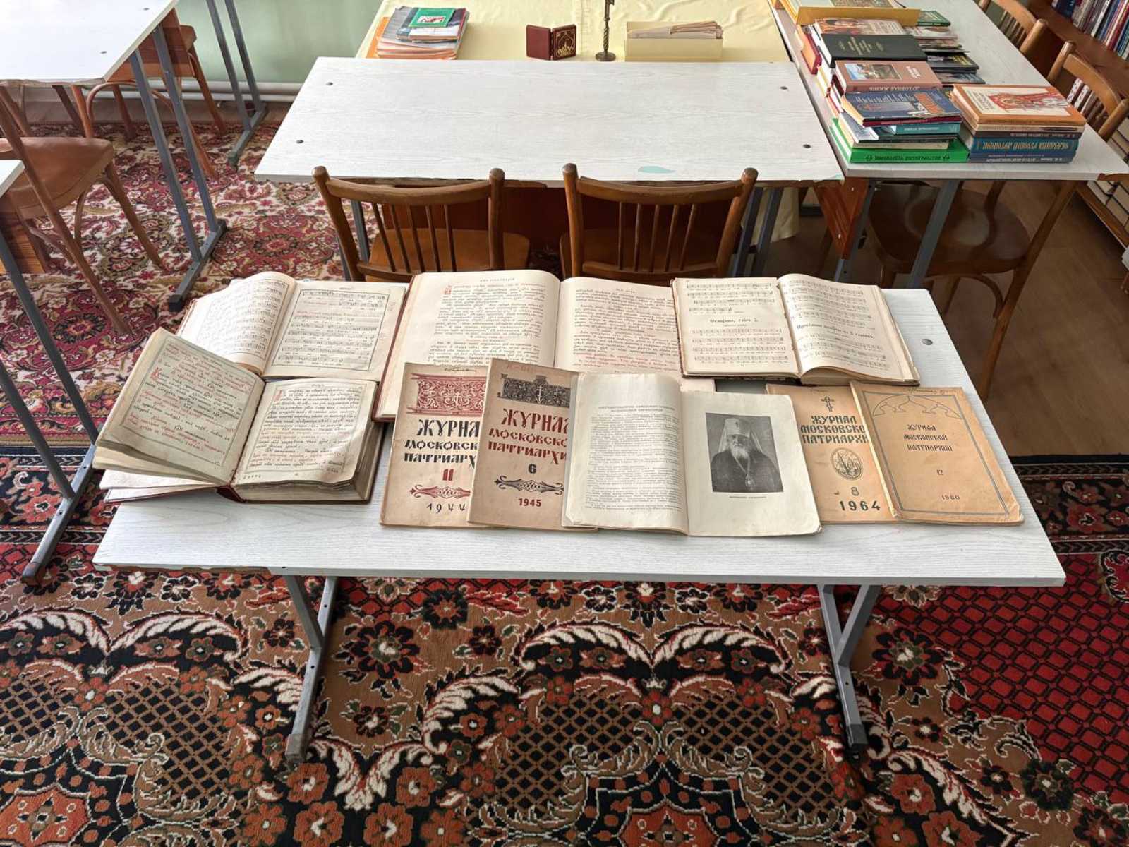 В ходе собрания были представлены старые богослужебные книги XIX века и журналы Московской Патриархии 1940-х – 1960-х годов XX века.
