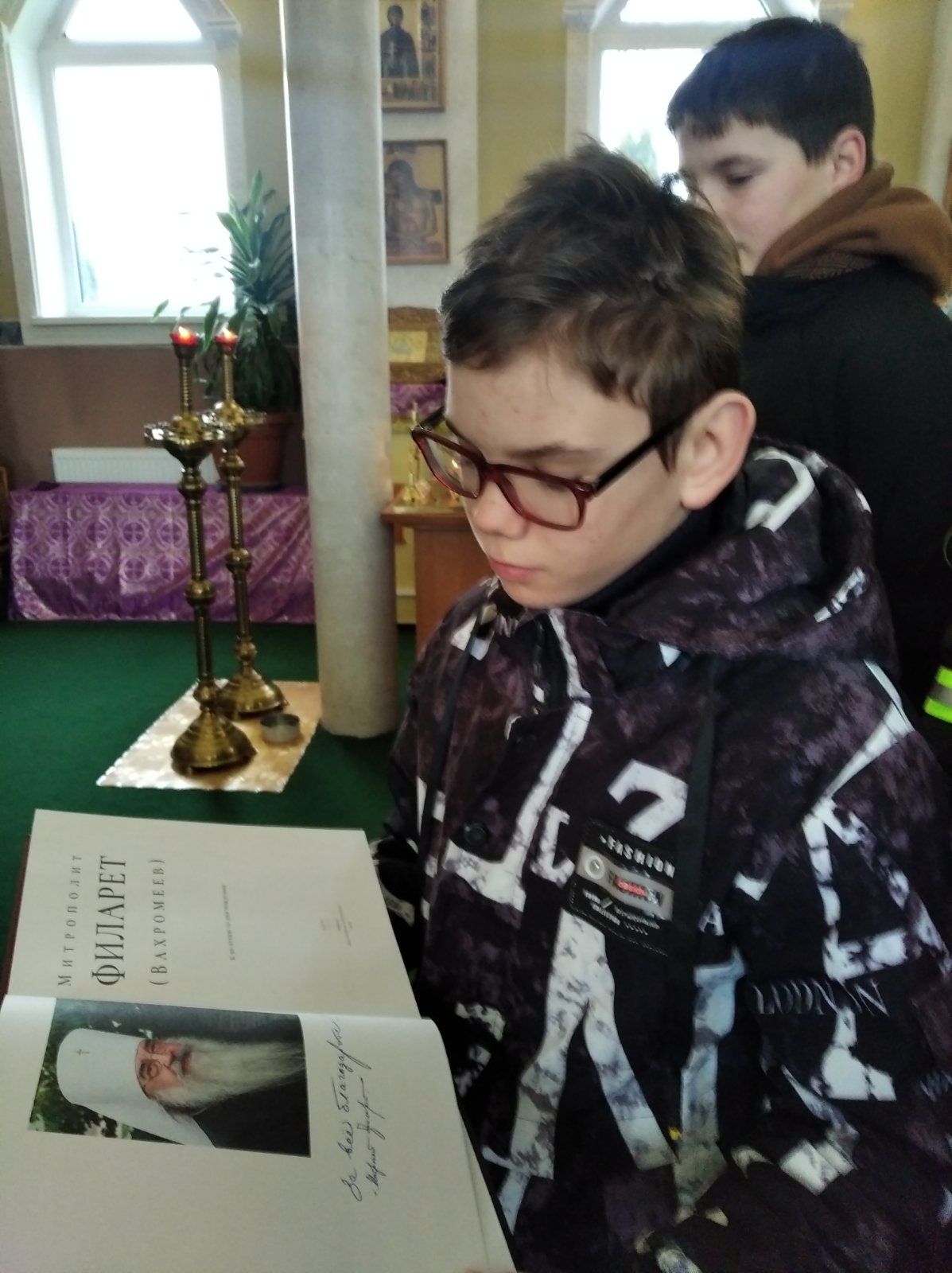 В ходе беседы священнослужитель рассказал учащимся об истории и этапах развития книгопечатания. Участники встречи обсудили значение духовной литературы в жизни человека, повествующей о примерах истинной веры и молитвы из жизни подвижников благочестия, подкрепленных подвигом новомучеников, прославленных в наше время.