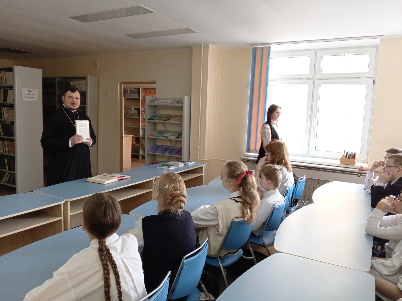 В преддверии Дня православной книги иерей Александр Дьяченко провел беседу с шестиклассниками средней школы №38 имени Кирилла Туровского г. Гродно