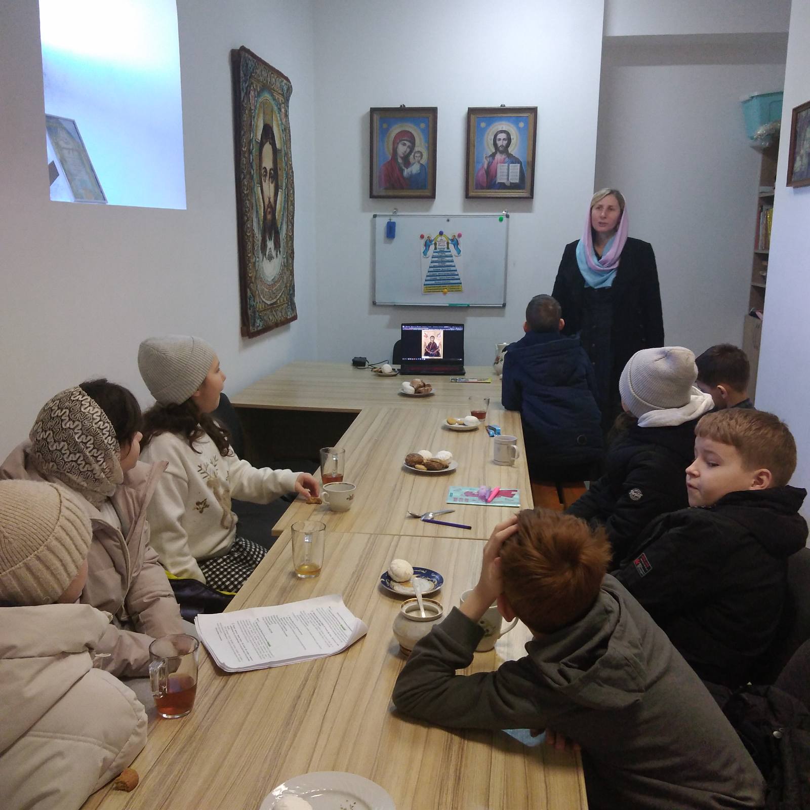 8 марта воспитанники воскресной школы прихода храма Богоявления г. Щучина приняли участие в кинолектории, посвященном духовному значению Пояса Пресвятой Богородицы.