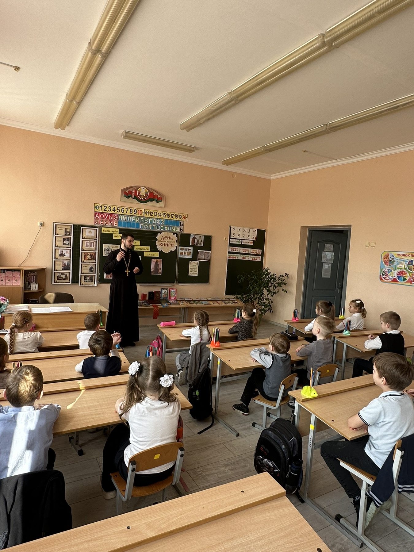 Иерей Александр Дежурко провел беседу с первоклассниками средней школы №1 г. Скиделя имени В. Г. Пешко о Дне православной книги