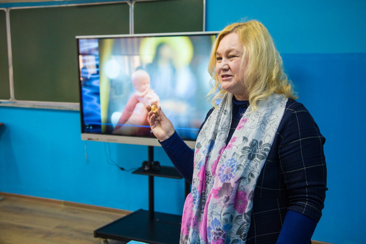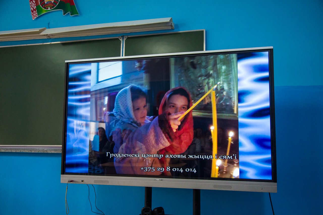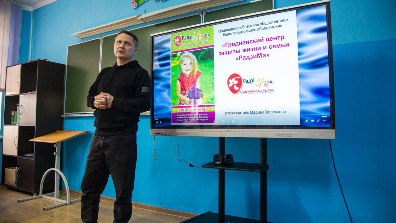 12 марта на родительском собрании в учреждении образования «Средняя школа №2 имени В.Ю. Саяпина г. Гродно» волонтеры Центра защиты жизни «РадзіМа» Марина Волочкова и Николай Байда провели беседу, посвященную защите жизни нерожденных детей и деятельности центра.