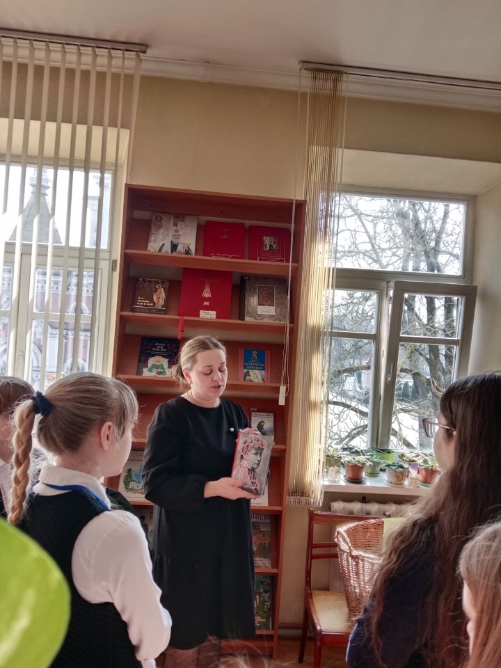13 марта, в преддверии Дня православной книги, библиотеку кафедрального собора Покрова Пресвятой Богородицы г. Гродно посетили учащиеся 6-го класса гимназии №10 имени Митрополита Филарета. Беседа была посвящена жизни и трудам первопечатника Ивана Федорова.