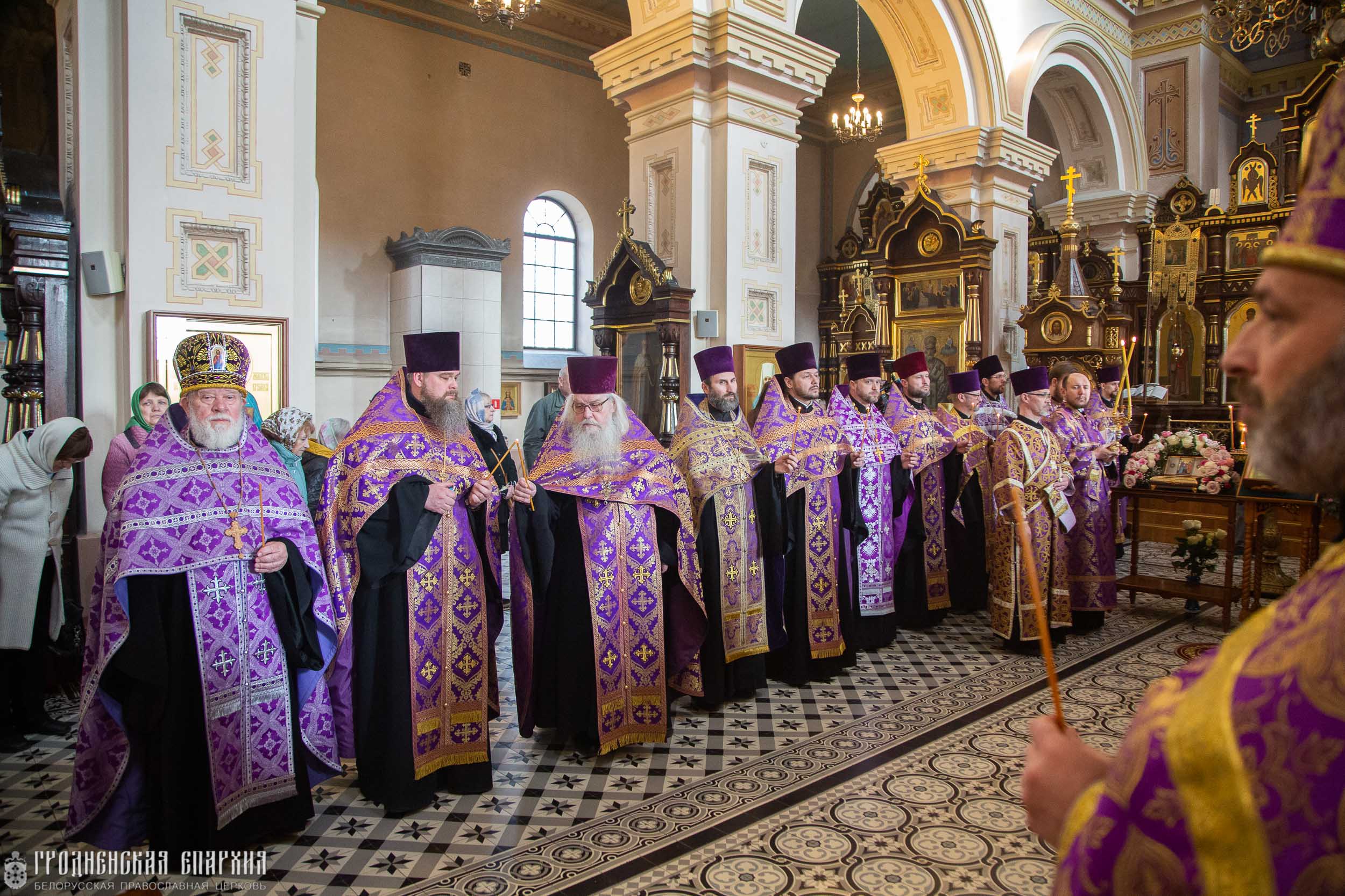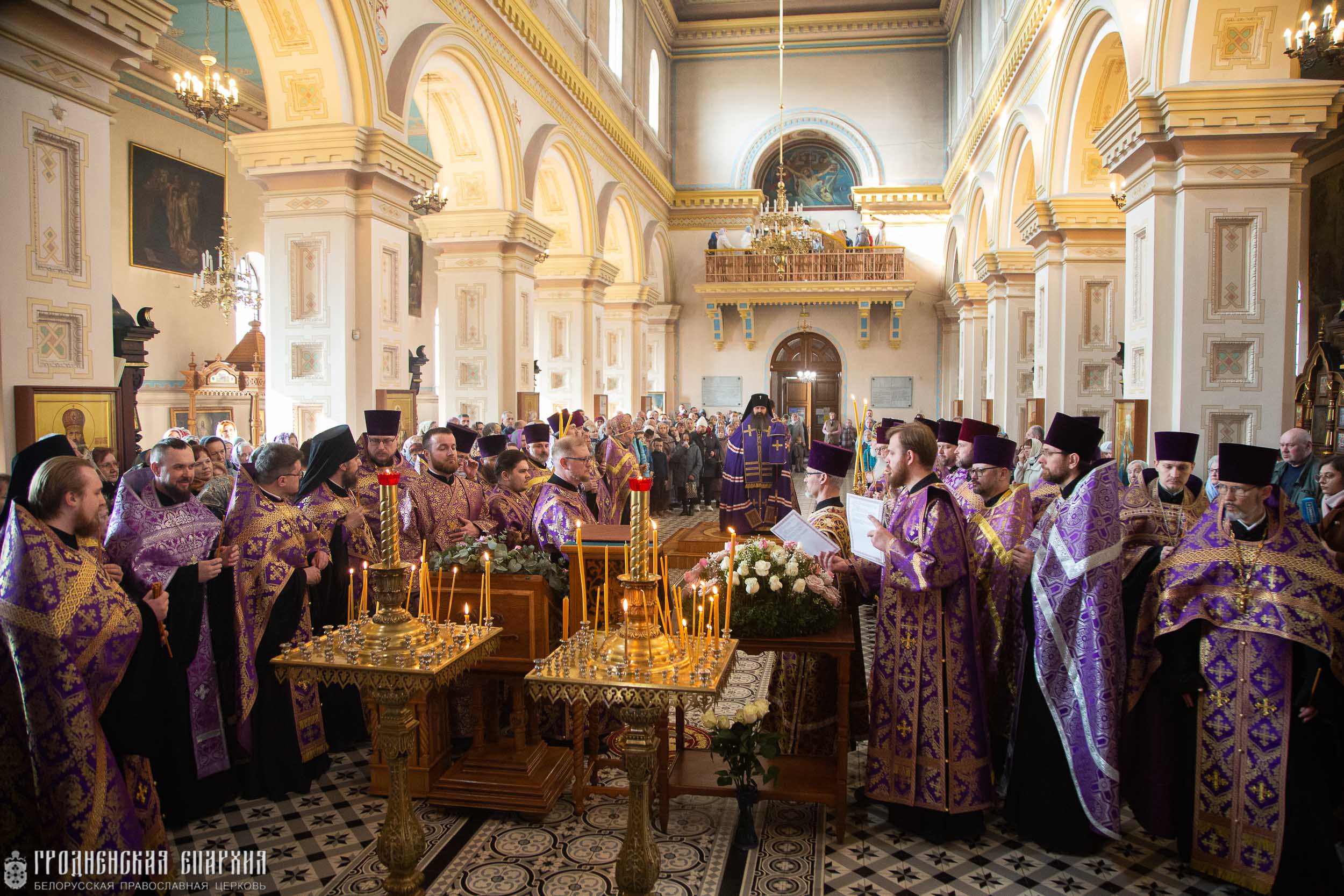 Его Высокопреосвященству сослужили: протоиерей Николай Лабынько, секретарь Гродненской епархии; протоиерей Григорий Беляцкий, настоятель кафедрального собора Покрова Пресвятой Богородицы; протоиерей Вячеслав Гапличник, благочинный Гродненского городского округа; настоятели приходов г. Гродно, клирики кафедрального собора и священнослужители епархии.