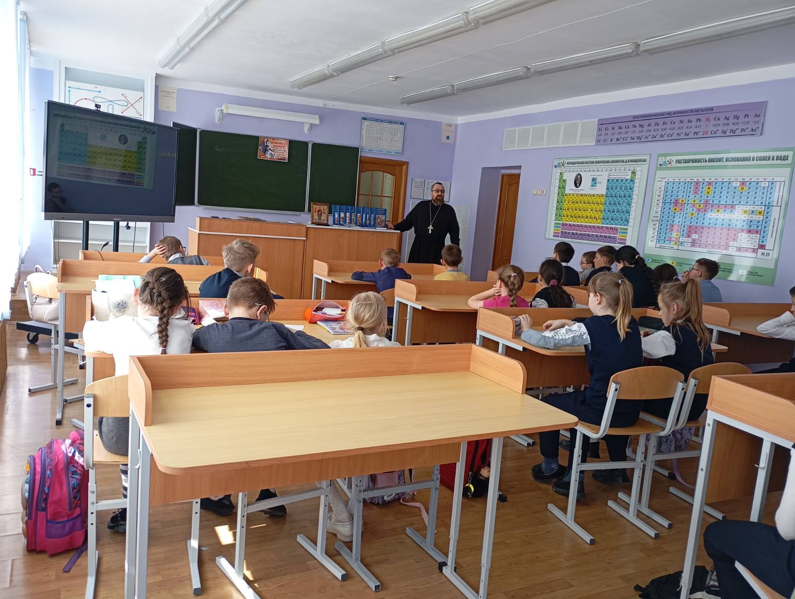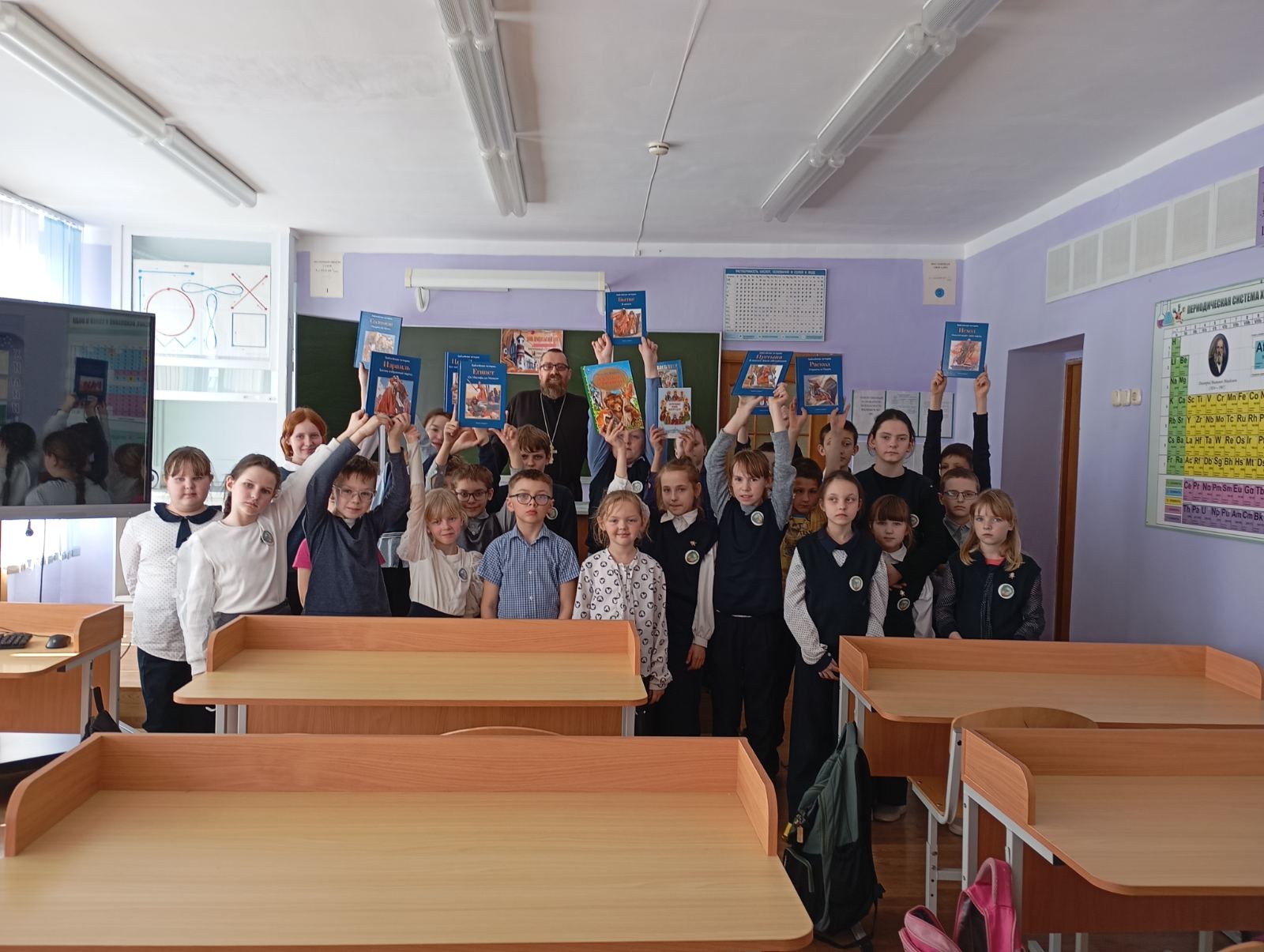 Священнослужитель рассказал учащимся о значении православной литературы в жизни человека, о Библии как главной книге христиан. На примере «Детской Библии» иерей Олег Засим показал доступность ее восприятия через красочные иллюстрации и представил подборку книг «Библейские истории». Священник также отметил важность книг писателя-натуралиста Виталия Бианки, которые знакомят детей с миром природы и помогают полюбить Божий мир.