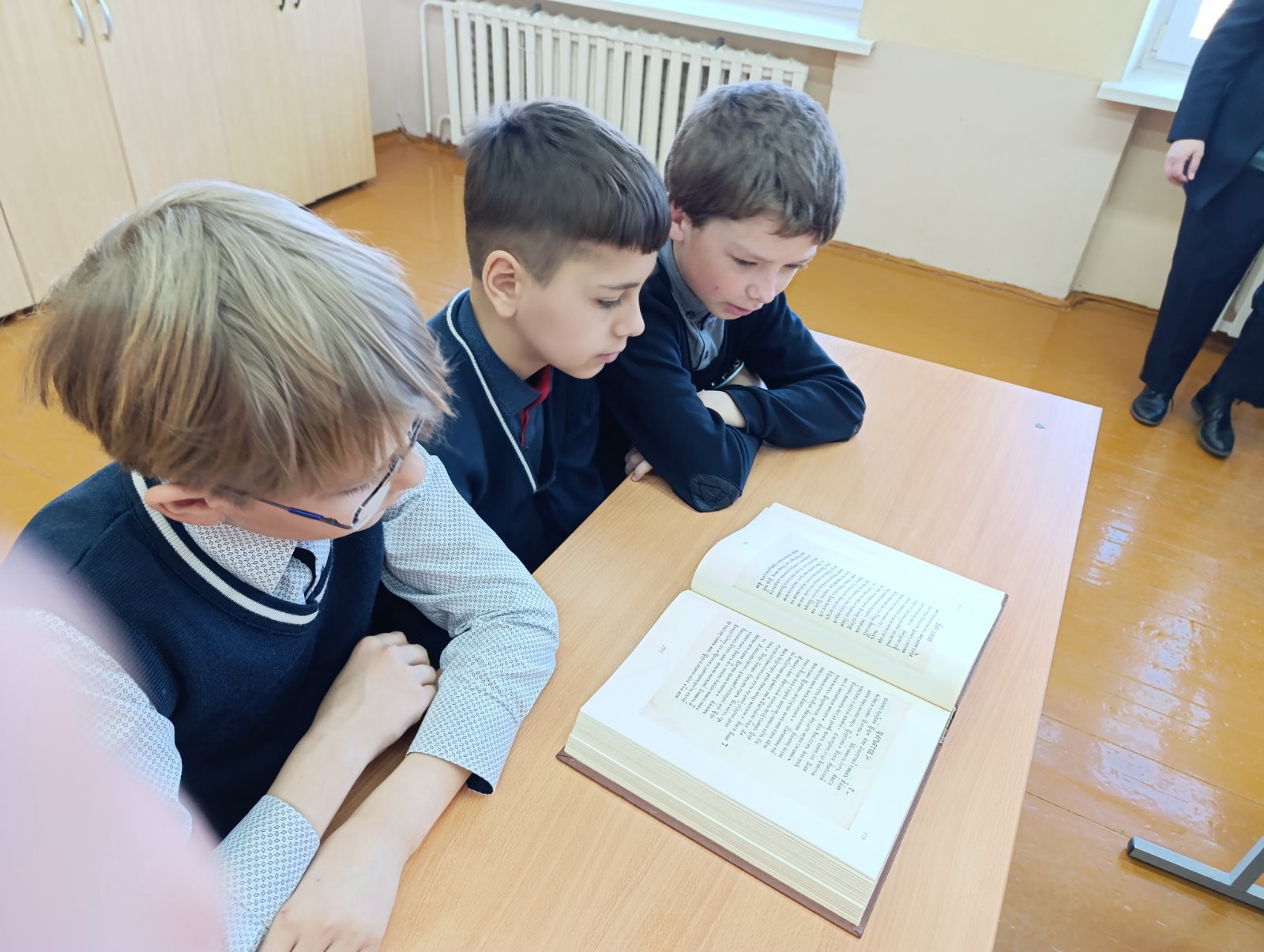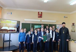 В ходе беседы учащиеся ознакомились с историей книгопечатания Священного Писания на славянских землях. Священнослужитель представил вниманию учащихся репринтное издание Острожской Библии Ивана Федорова, отдельные книги Библии в переводе Франциска Скорины и Синодальный перевод Священного Писания. Состоялось обсуждение книг, которые могут быть полезны для чтения школьникам, а также значения книги как источника знаний в современном мире.