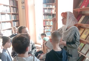 Для младшего отделения воскресной школы «Зернышки» Елена Леонидовна Бовсуновская провела экскурсию и интерактивные игры: дети отгадывали загадки о православной книге и обсуждали народные пословицы о книге, чтении и просвещении.