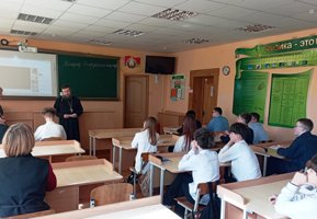 19 марта настоятель храма Покрова Пресвятой Богородицы г. Волковыска иерей Сергий Хвощев посетил государственное учреждение образования «Волковысская средняя школа №4» и провел беседу с учащимися 8-х классов на тему осмысления понятия насилия в контексте светской и религиозной жизни человека.