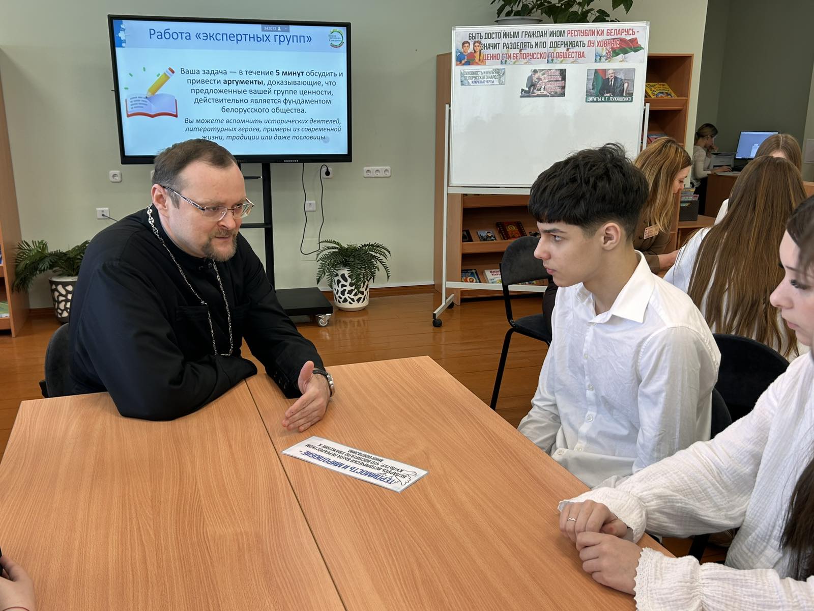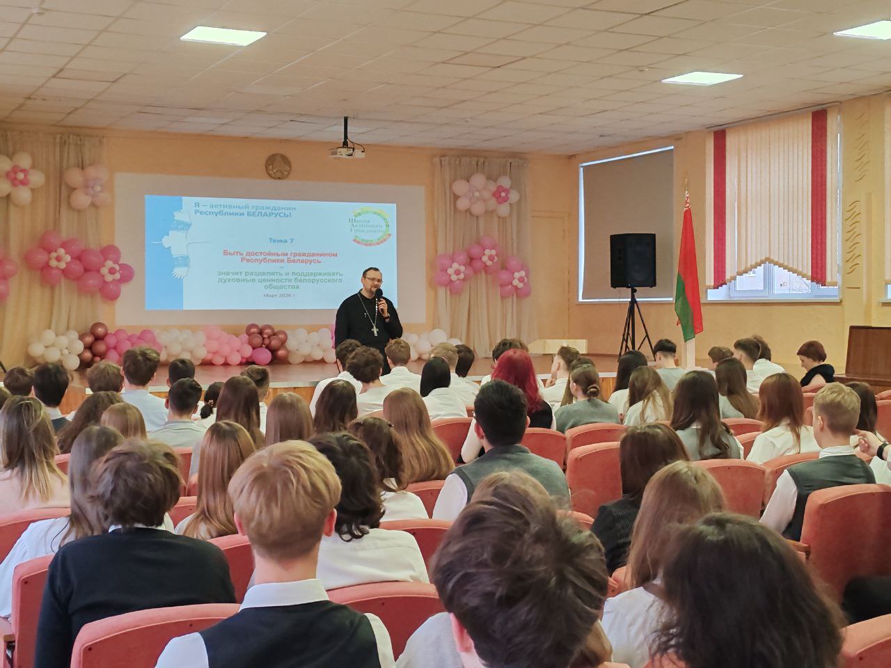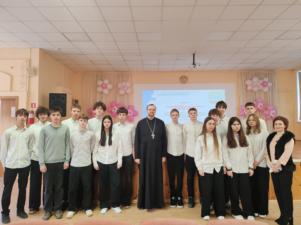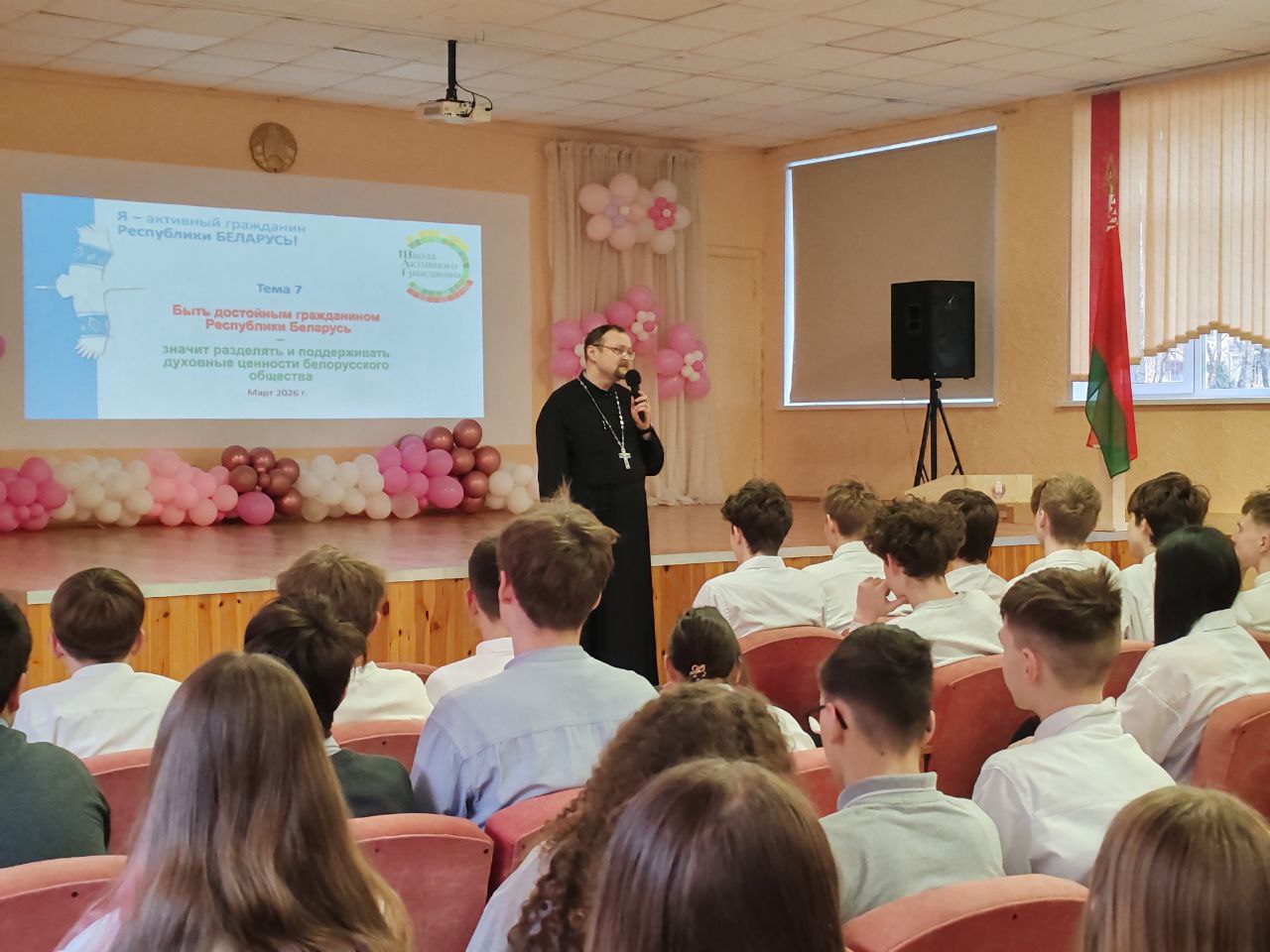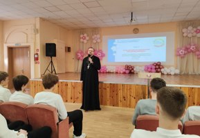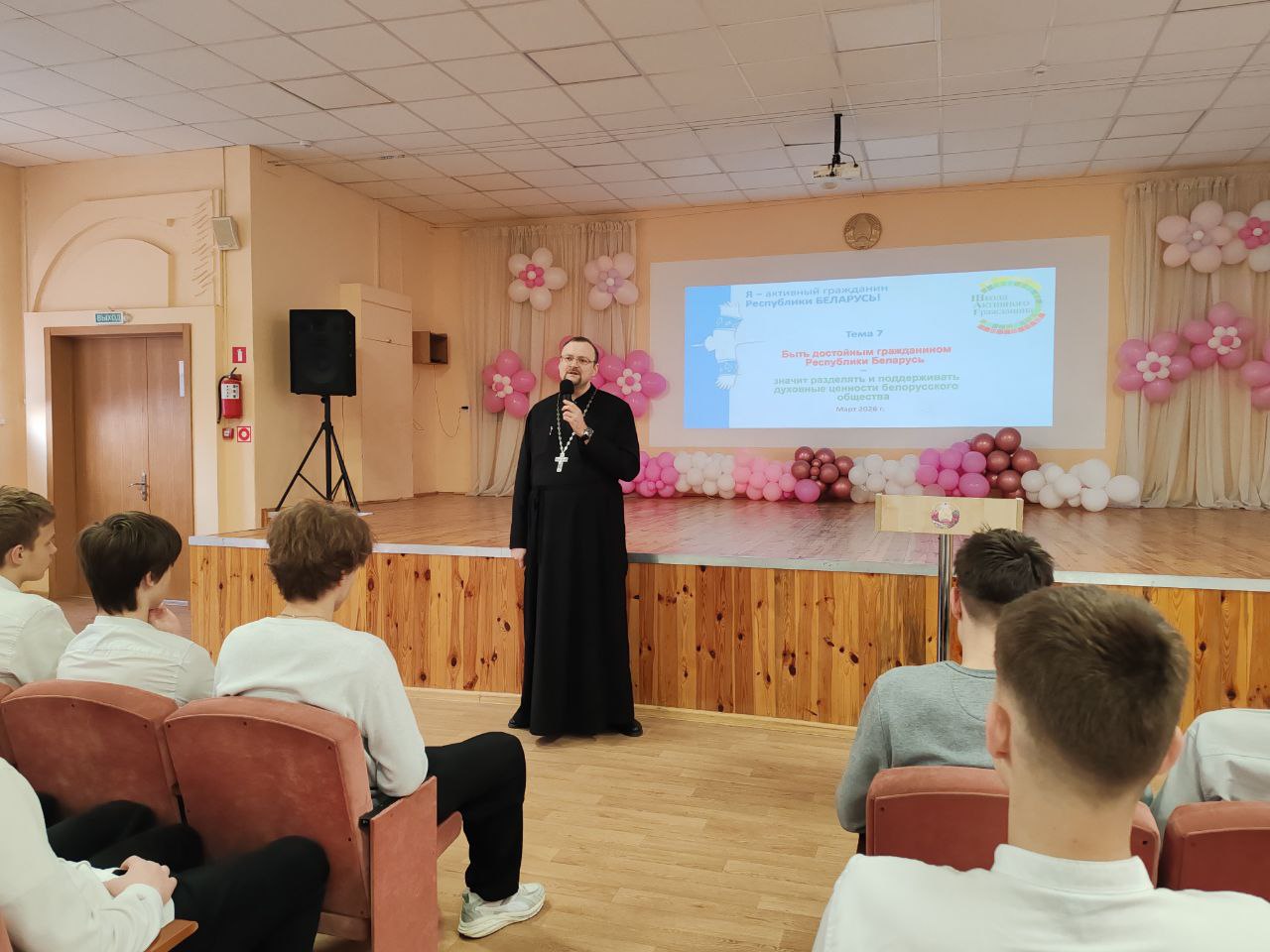 В своем выступлении иерей Игорь обратил внимание на то, что именно христианство является основой духовных и культурных ценностей белорусского общества, а также подчеркнул особую роль Православия в историческом становлении и развитии духовных, культурных и государственных традиций белорусского народа. В завершение спикер ответил на вопросы аудитории.