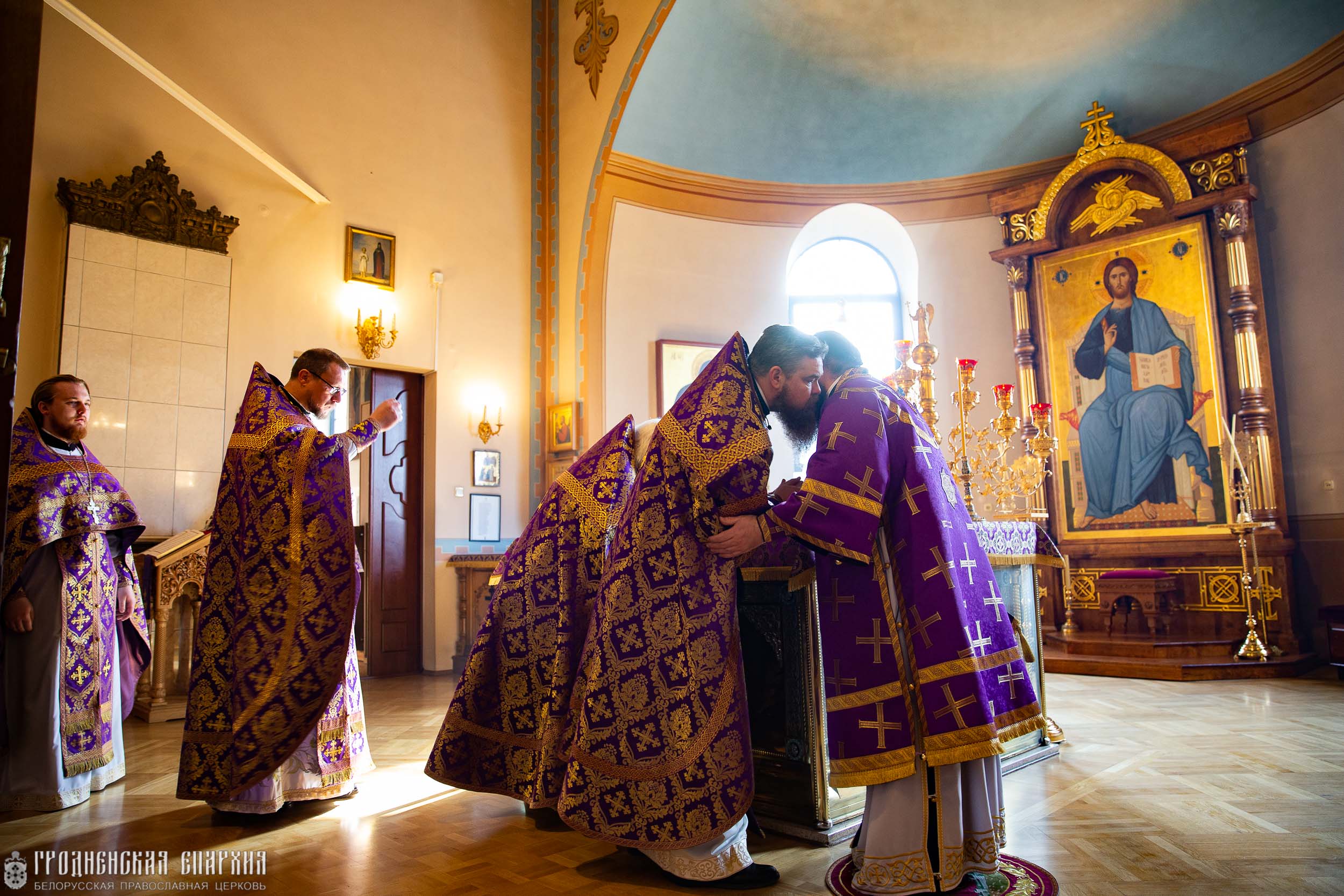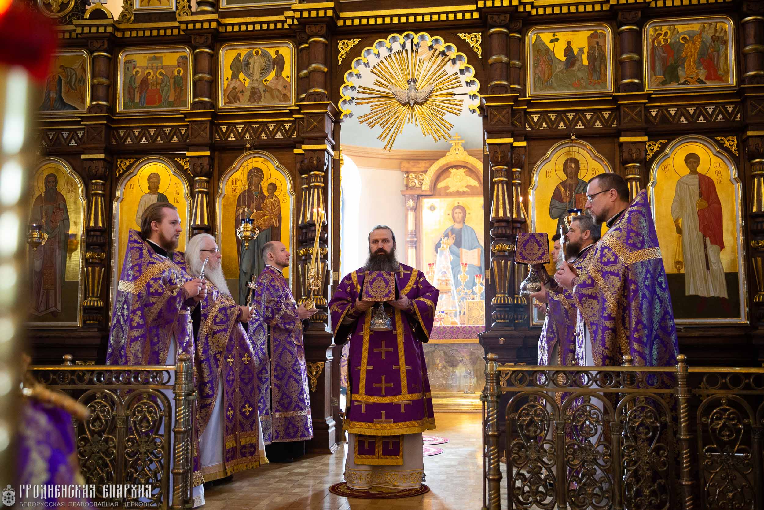 Его Высокопреосвященству сослужили: протоиерей Григорий Беляцкий, настоятель кафедрального собора Покрова Пресвятой Богородицы; протоиерей Андрей Бондаренко, духовник Гродненской епархии; иерей Александр Гук, руководитель отдела по церковной благотворительности и социальному служению; клирики кафедрального собора.