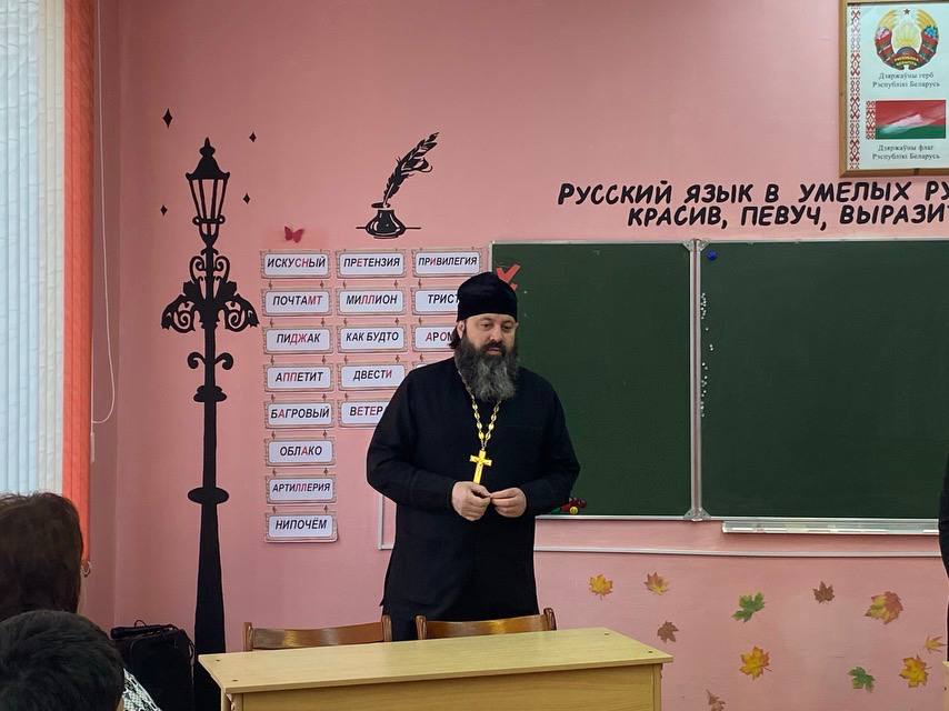 31 марта в Беняконской средней школе Вороновского района состоялась встреча учащихся старших классов с благочинным Вороновского церковного округа иереем Игорем Волошиным.