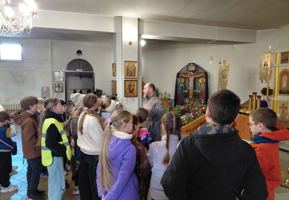 26 марта участники весеннего воспитательно-оздоровительного лагеря «Радуга» государственного учреждения образования «Средняя школа №8 г. Волковыска» посетили приход храма Благовещения Пресвятой Богородицы.