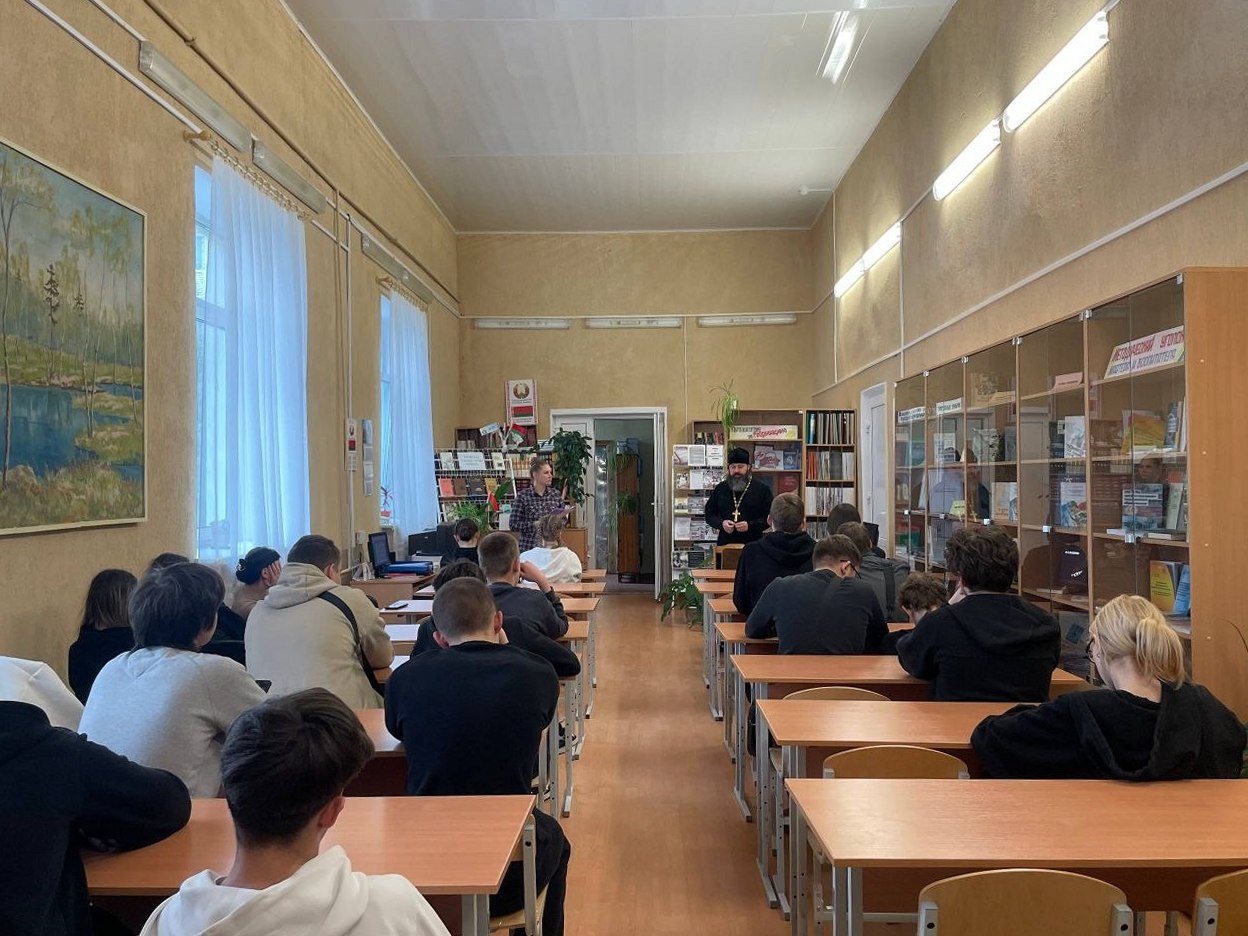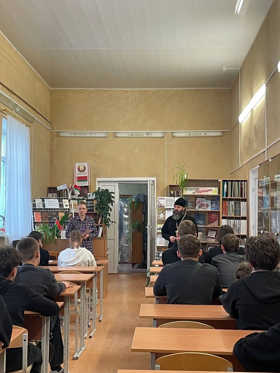 Священнослужитель обсудил с учащимися значение быть достойным гражданином Республики Беларусь, а также духовные ценности, лежащие в основе белорусского общества. В ходе беседы были затронуты темы значимости знаний и образования, особое внимание уделено традиционным семейным ценностям.