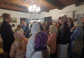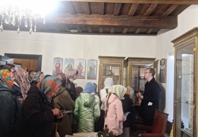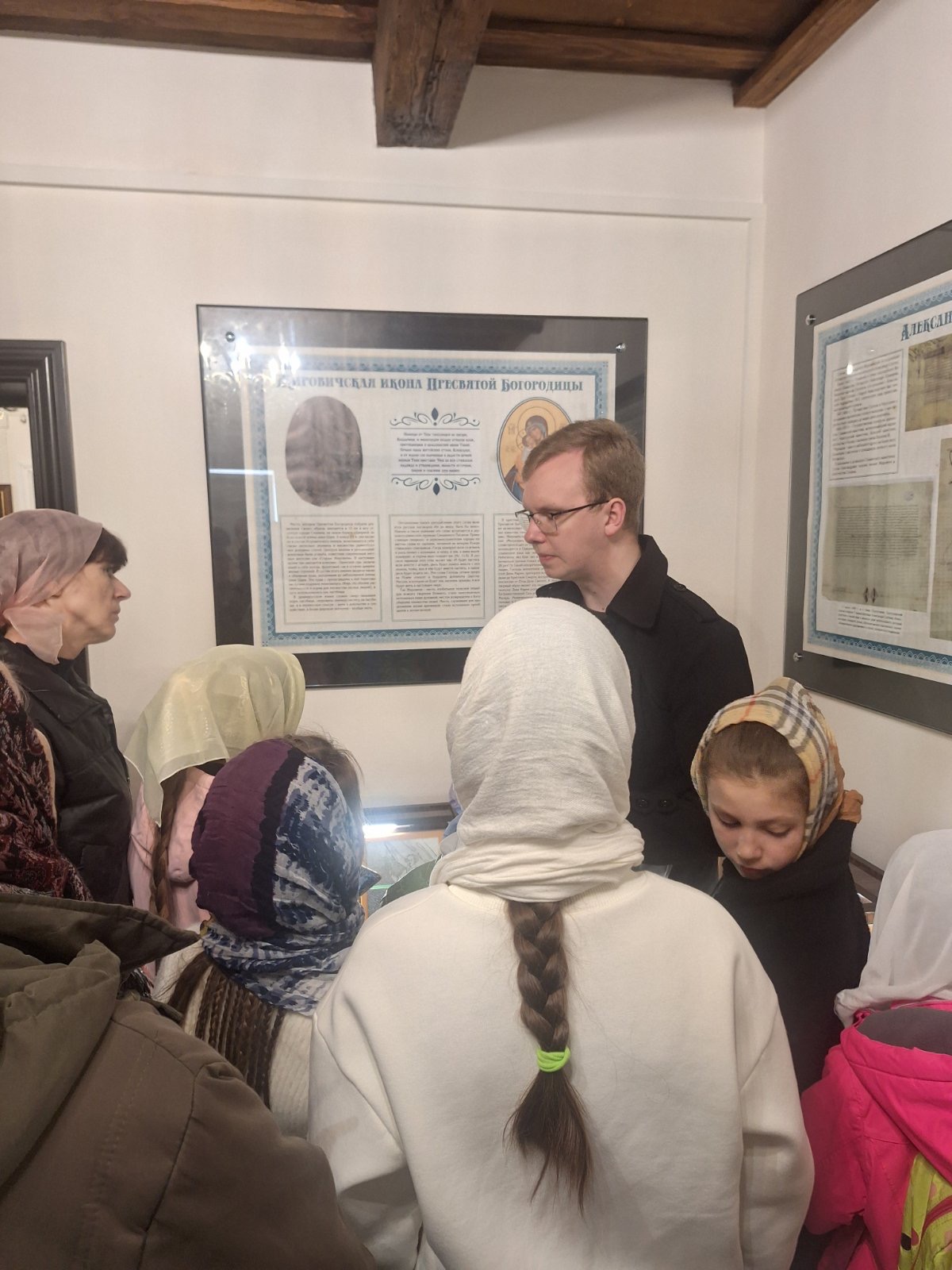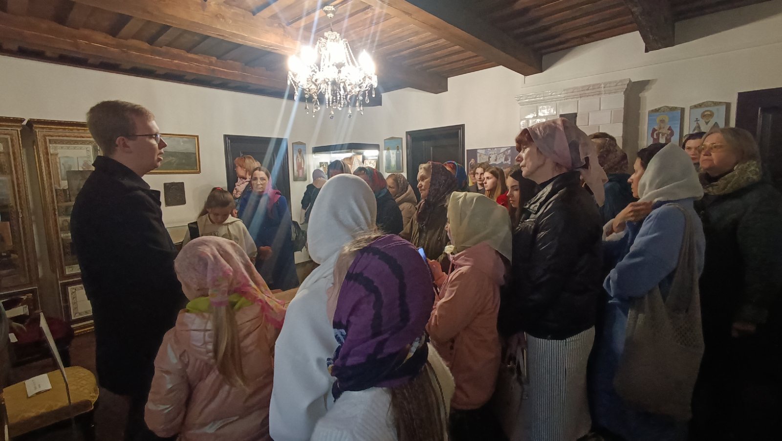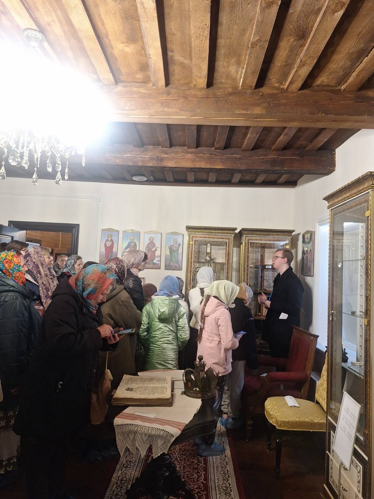 Паломники ознакомились с музеем обители, открытым в августе 2025 года в отреставрированном архиерейском доме XIX века. В экспозиции представлены экспонаты, отражающие историю Белорусской Православной Церкви.