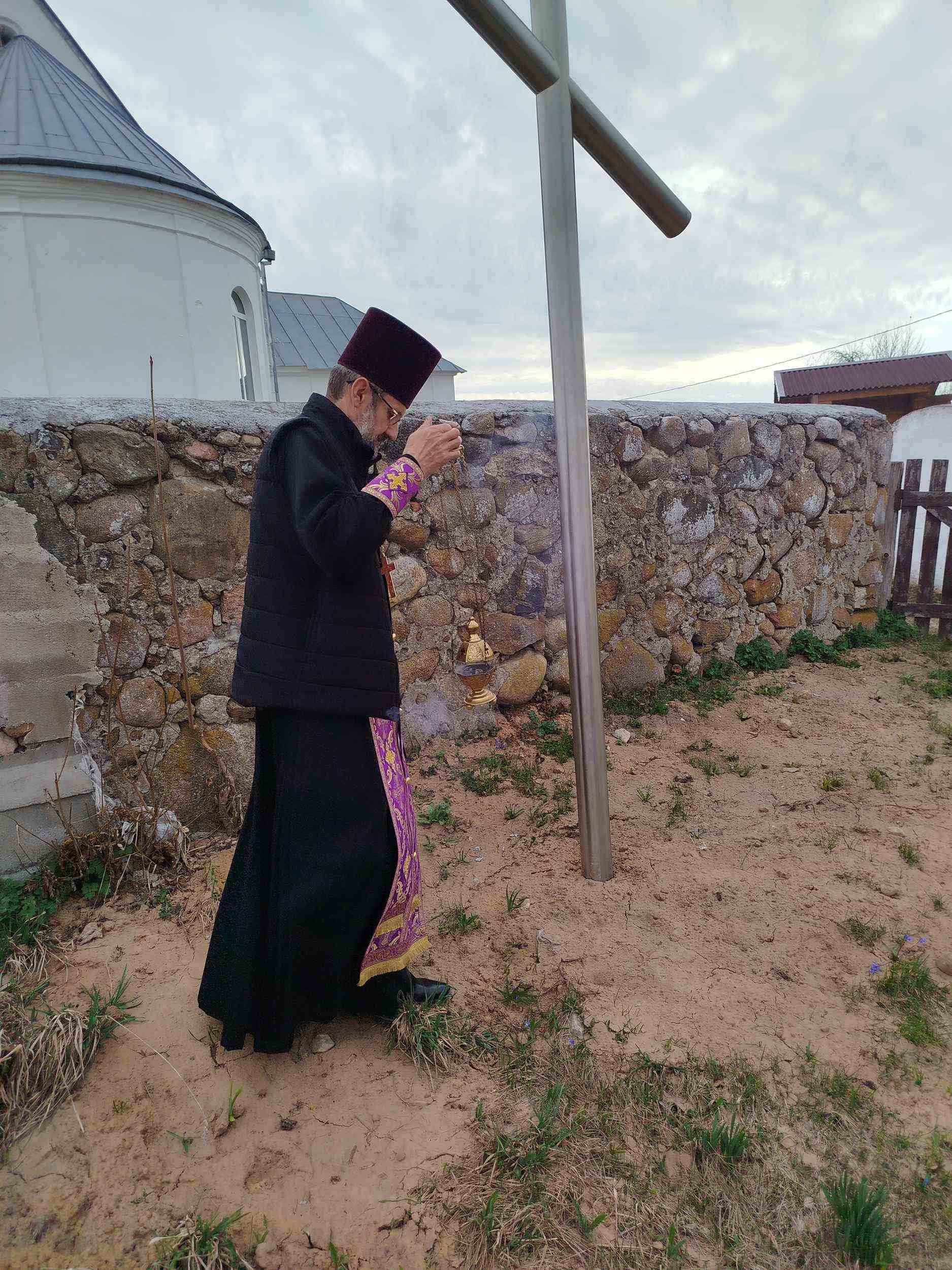 29 марта настоятель прихода храма Святой Живоначальной Троицы аг. Подороск протоиерей Сергий Быр совершил чин освящения Поклонного креста на кладбище аг. Подороск.