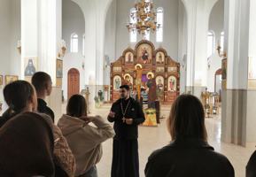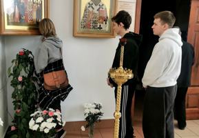 Следующей остановкой паломников стал храм Собора новомучеников и исповедников земли Белорусской г. Скиделя. Клирик прихода иерей Александр Дежурко провел экскурсию по приходу, рассказал о новомучениках и исповедниках земли Белорусской и 40 мучениках Севастийских, молитвенное вспоминаемых в этот день. После беседы молодежь пропела величание новомученикам, приложилась к храмовой иконе, поблагодарила иерея Александра за познавательную экскурсию и продолжила свое путешествие.