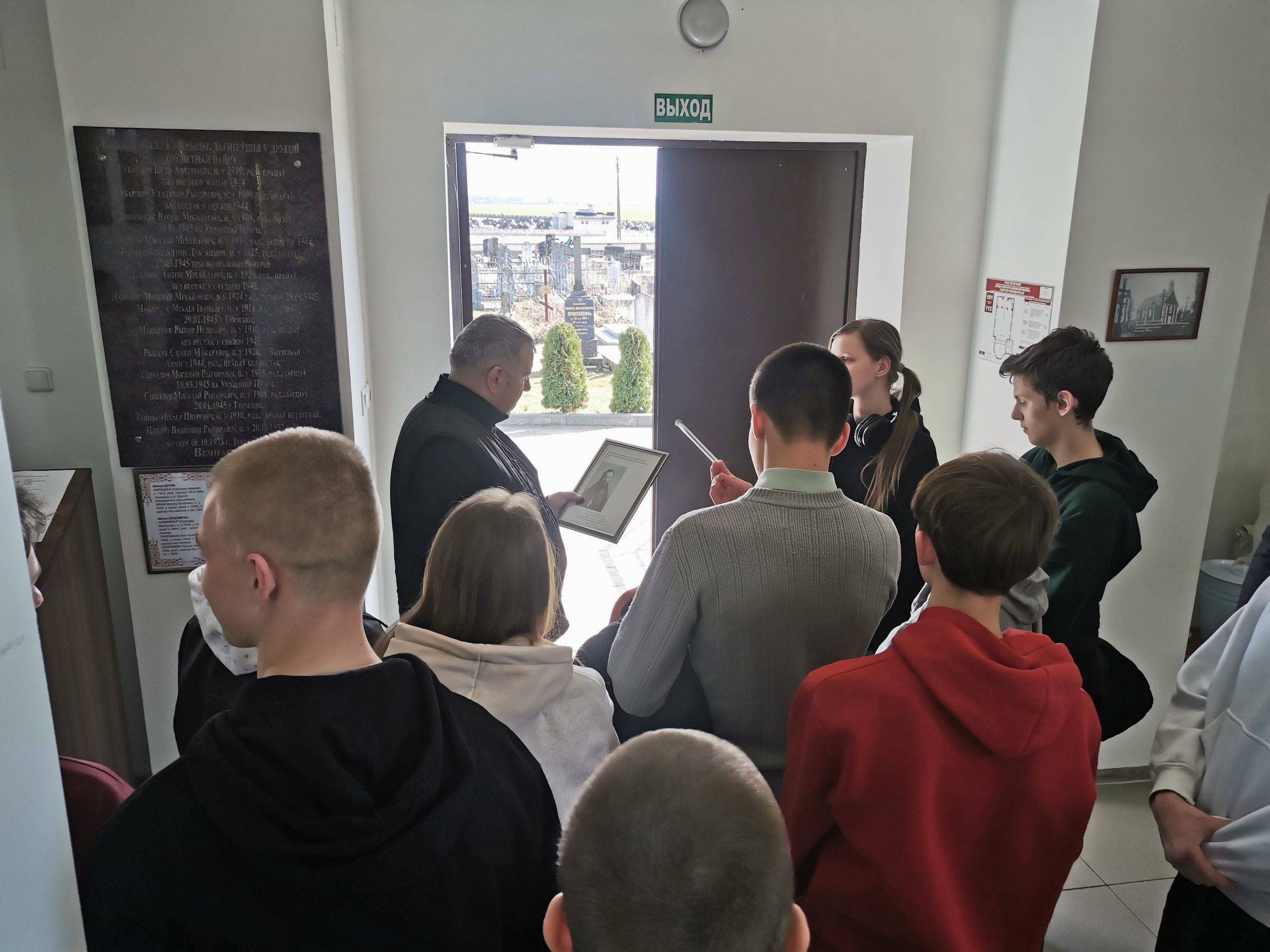 Завершающим местом посещения стала Михайловская церковь на Скидельском кладбище. Здесь гостей встретил настоятель прихода иерей Сергий Ермаков. Иерей Сергий рассказал об истории основания г. Скиделя, жизни и быте местного населения, старинных храмах, утраченных в ХХ столетии, а также об истории создания и реконструкции Михайловской церкви. Священник показал внутреннее устройство храма и его иконы.