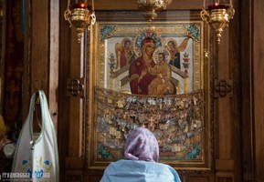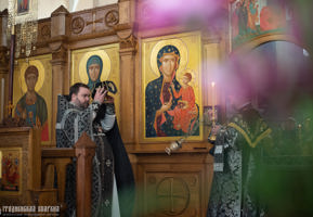 После заамвонной молитвы Правящий Архиерей совершил чин славления перед почитаемым образом Божией Матери «Всецарица».