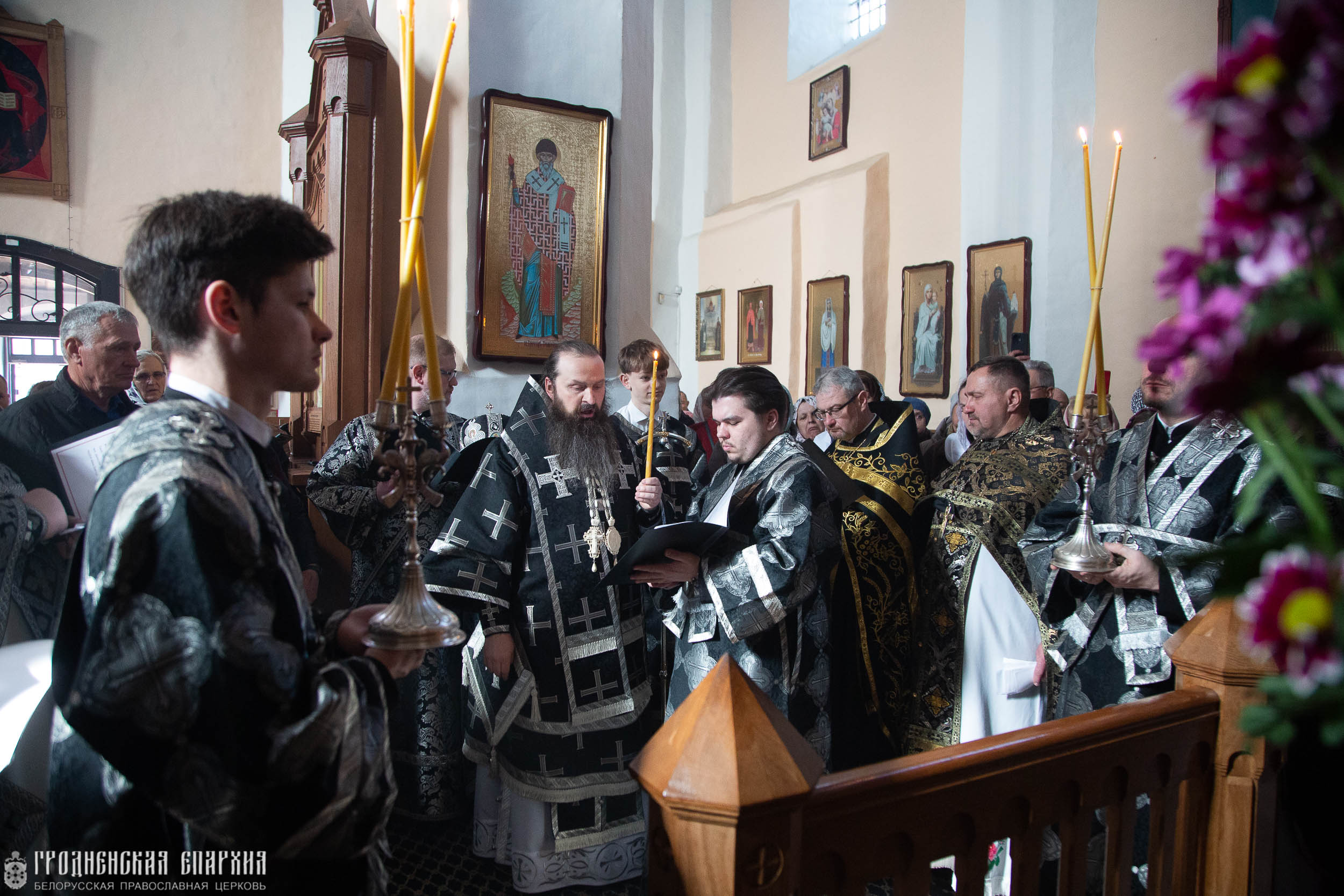 Его Высокопреосвященству сослужили: протоиерей Николай Лабынько, Секретарь Гродненской епархии; протоиерей Георгий Суботковский, благочинный Зельвенского церковного округа; протоиерей Арсений Ананко, настоятель прихода храма Святого Архангела Михаила; протоиерей Виктор Литвинов, настоятель прихода храма святой праведной Анны д. Мижеричи Зельвенского района; иерей Николай Гляд, настоятель прихода храма Преображения Господня д. Деречин Зельвенского района; иерей Александр Авсиевич, иерей Виталий Шостыр, клирики прихода храма Святого Архангела Михаила.