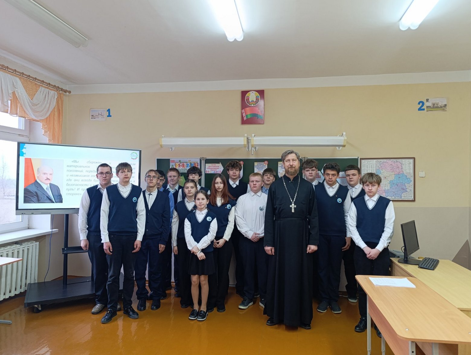 31 марта настоятель прихода храма Покрова Пресвятой Богородицы аг. Орля иерей Игорь Марчик провел встречу с учащимися старших классов Орлевской средней школы. Тема встречи — «Быть достойным гражданином Республики Беларусь — значит разделять и поддерживать духовные ценности белорусского общества».