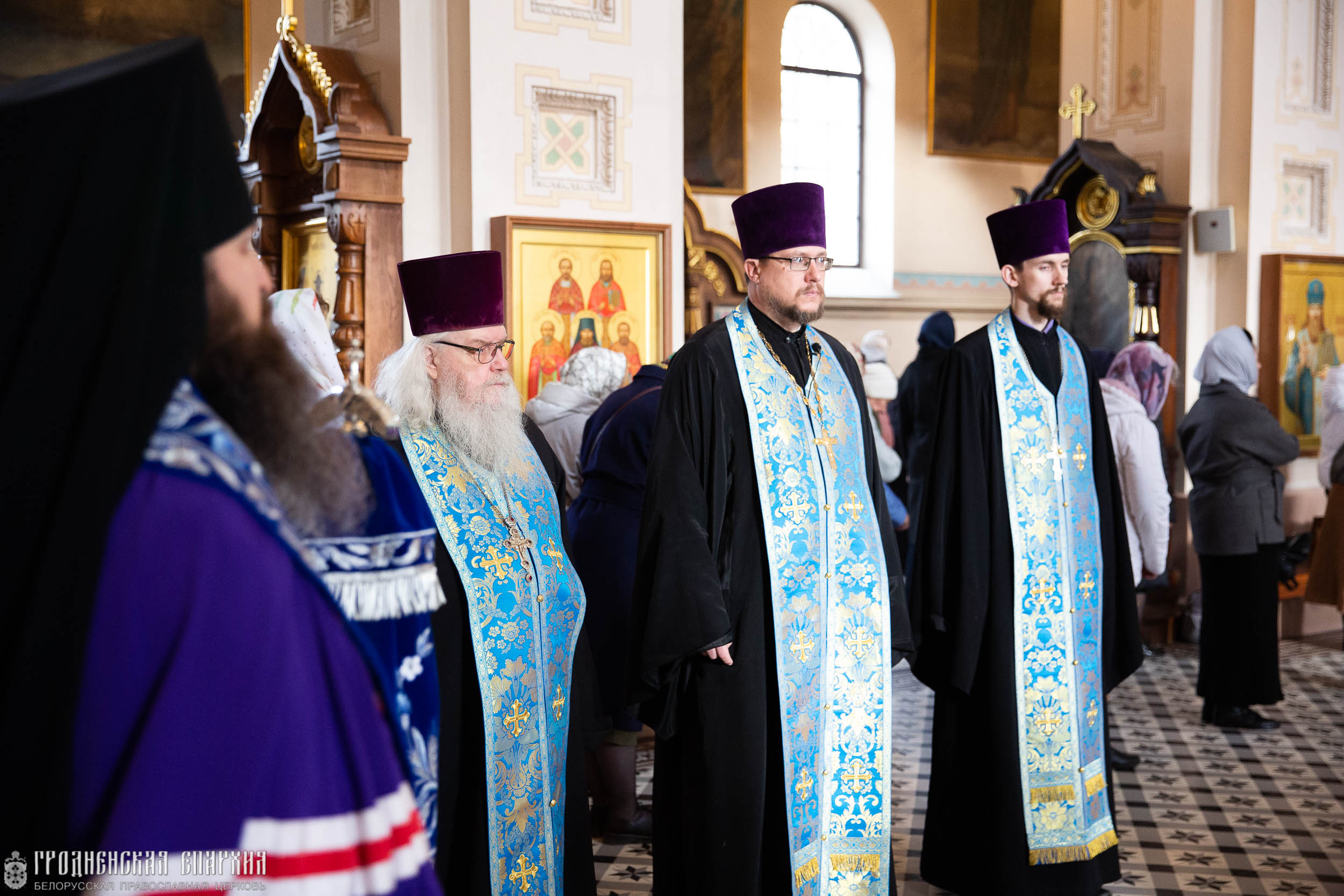 Его Высокопреосвященству сослужили: протоиерей Григорий Беляцкий, настоятель кафедрального собора; протоиерей Андрей Бондаренко, духовник Гродненской епархии; клирики кафедрального собора.