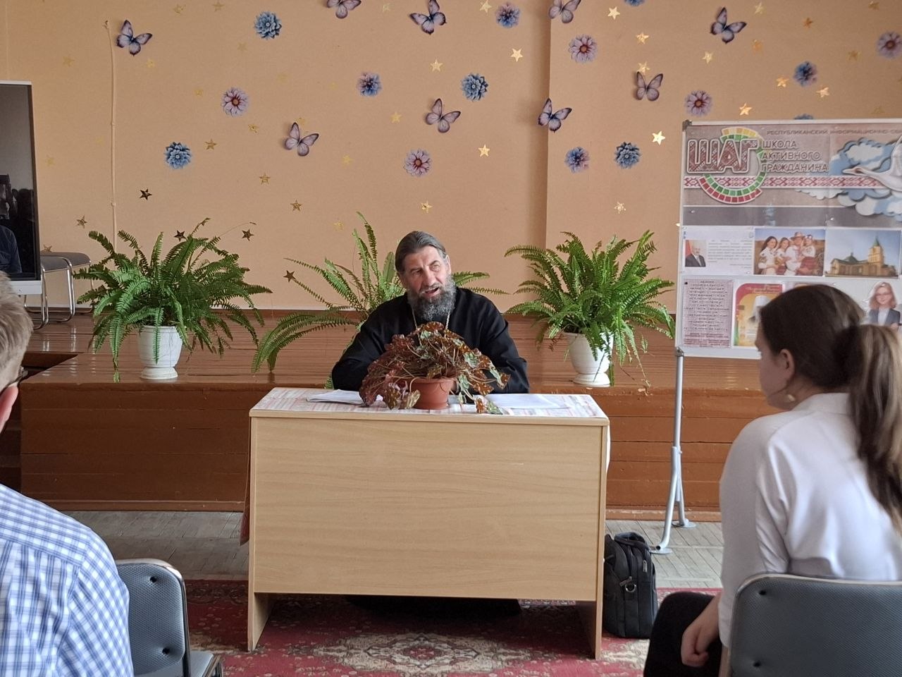 2 апреля настоятель храма Преображения Господня г. п. Острино протоиерей Алексий Талмазан посетил Остринскую среднюю школу, где провел беседу с учащимися VIII–XI классов по программе «Школа Активного Гражданина» (ШАГ).