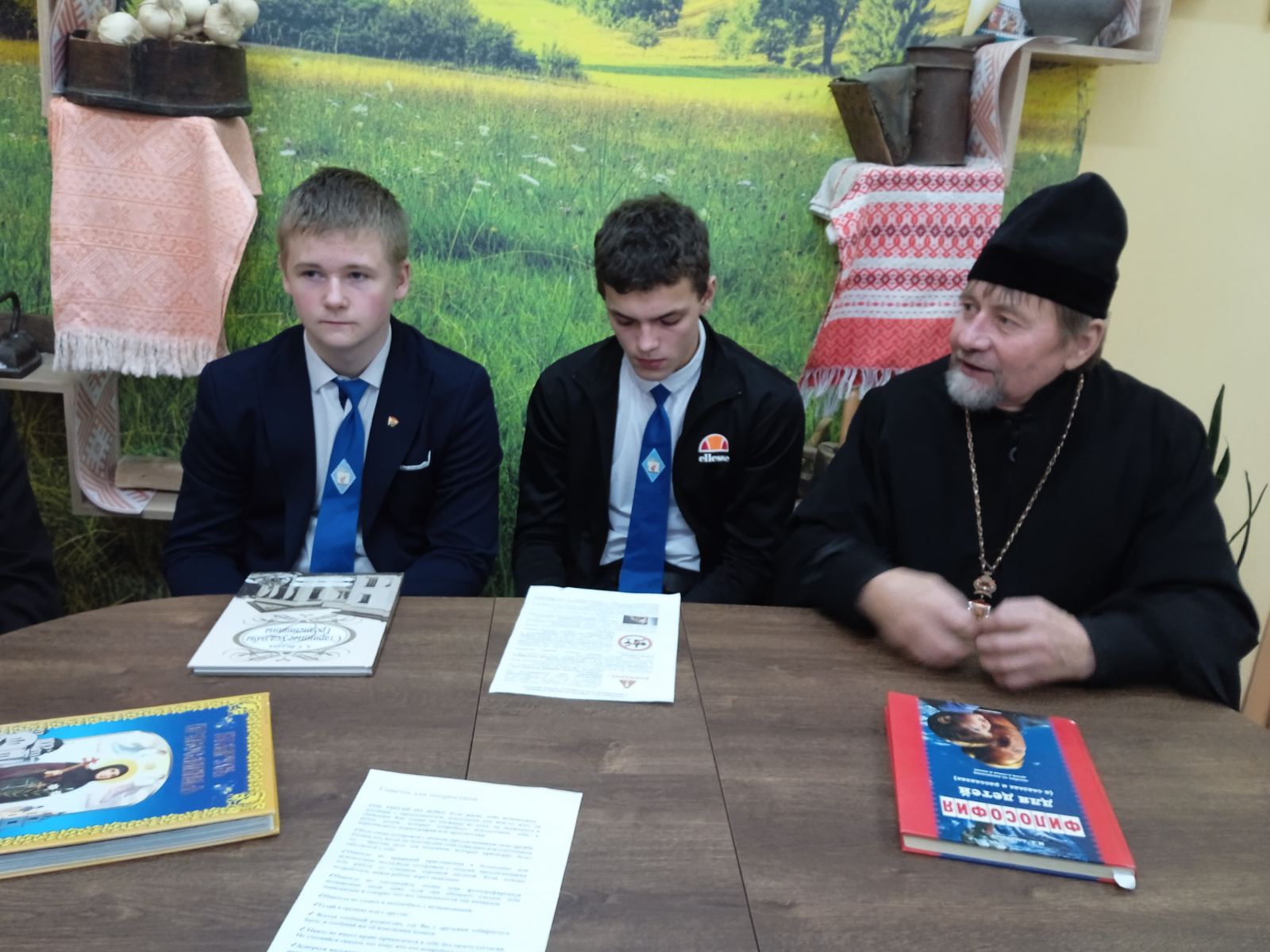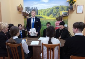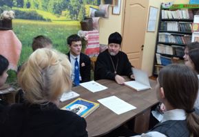 За круглым столом священник обратил внимание учащихся на то, что жизненные ценности — это внутренние ориентиры человека, определяющие его цели, поступки и отношение к миру. Доминирующими ценностями являются семья и Родина. Иерей Леонид акцентировал внимание на духовных ценностях — любви, доброте, дружбе, сострадании, справедливости, совести, которые являются основополагающими в формировании личности. В отличие от материальных, духовные ценности нельзя купить или потрогать.