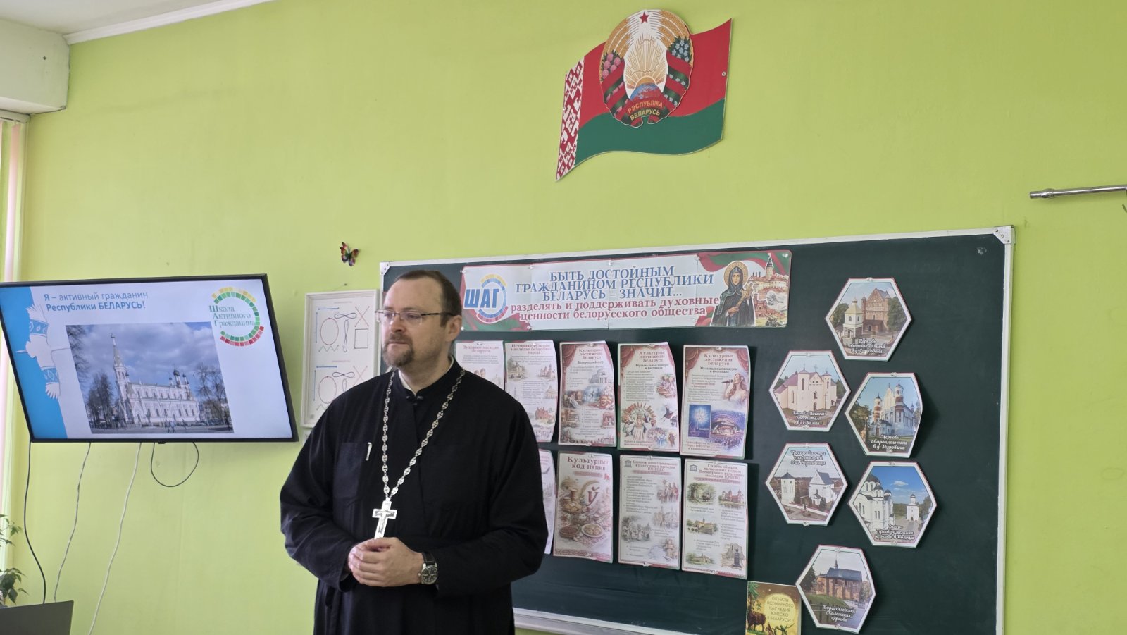 В учреждениях образования священнослужитель принял участие в работе диалоговых площадок по теме «Быть достойным гражданином Республики Беларусь — значит разделять и поддерживать духовные ценности белорусского общества».