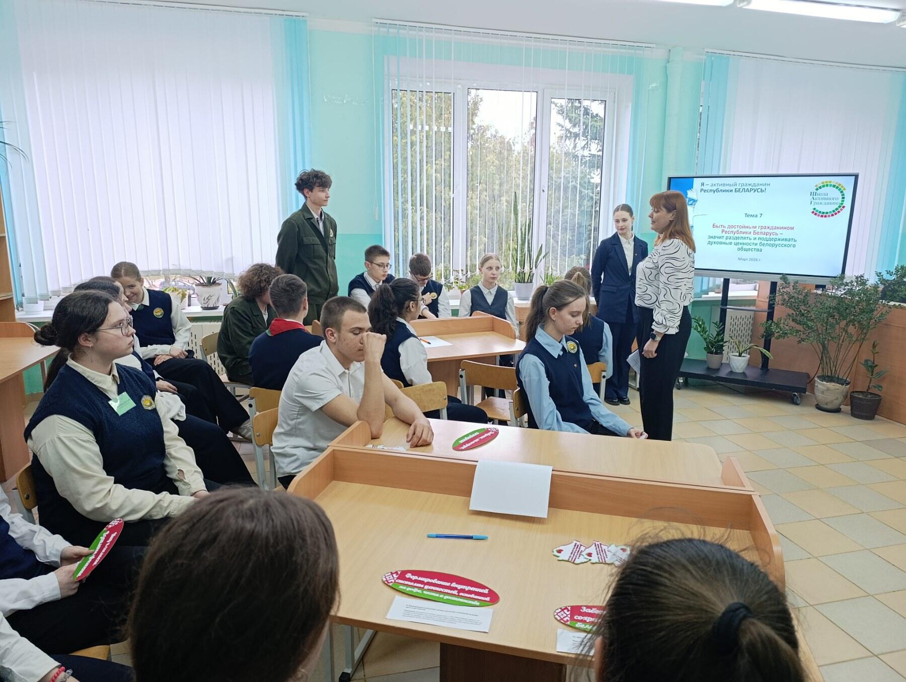 31 марта в учреждении образования прошёл информационно-образовательный проект «Школа Активного Гражданина» (ШАГ) для учащихся 8–11 классов на тему «Быть достойным гражданином Республики Беларусь – значит разделять и поддерживать духовные ценности белорусского общества». Мероприятие было организовано в интерактивной форме интеллектуальной игры «Своя игра».