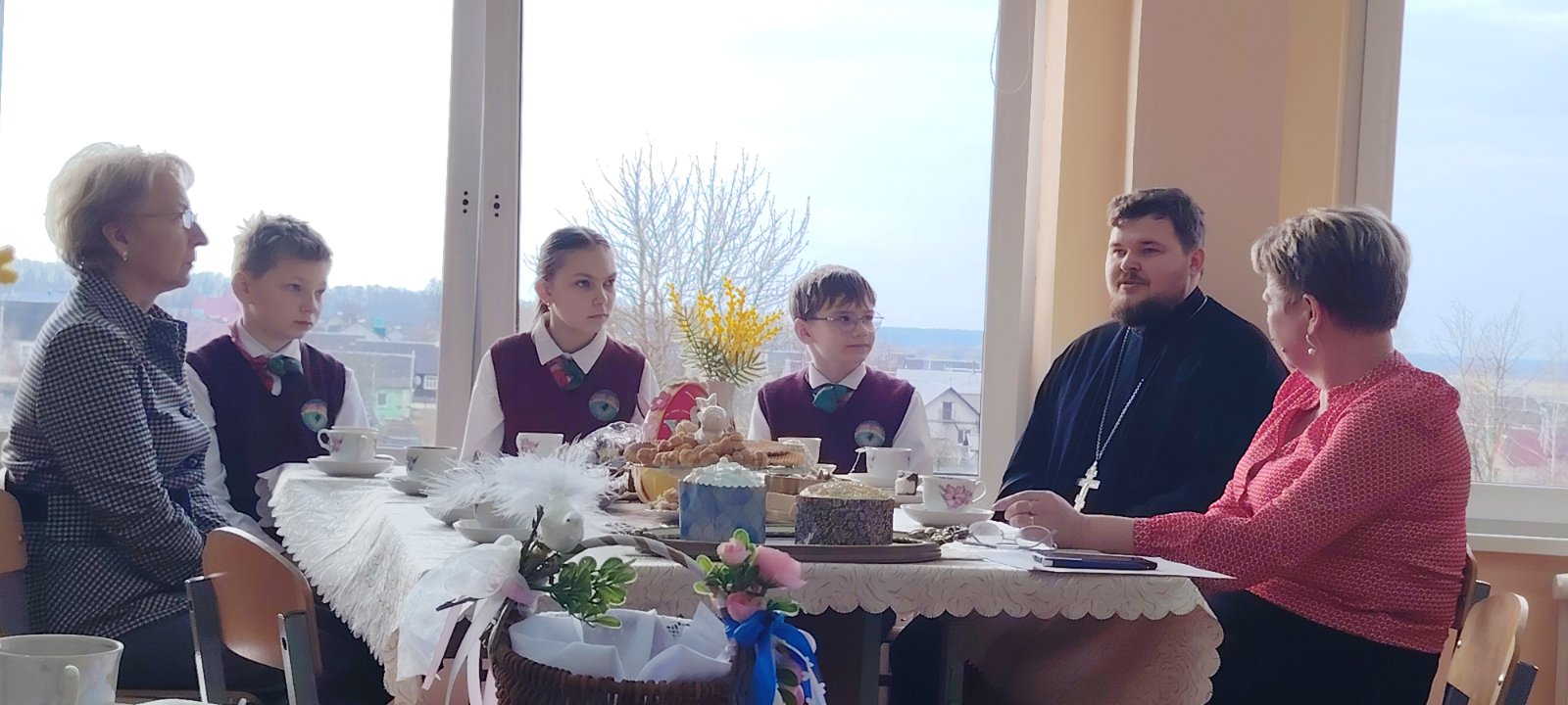 После завершения работы проекта состоялась беседа о предстоящих праздниках с педагогами и ребятами, посещающими факультатив «Основы духовно-нравственной культуры и патриотизма».