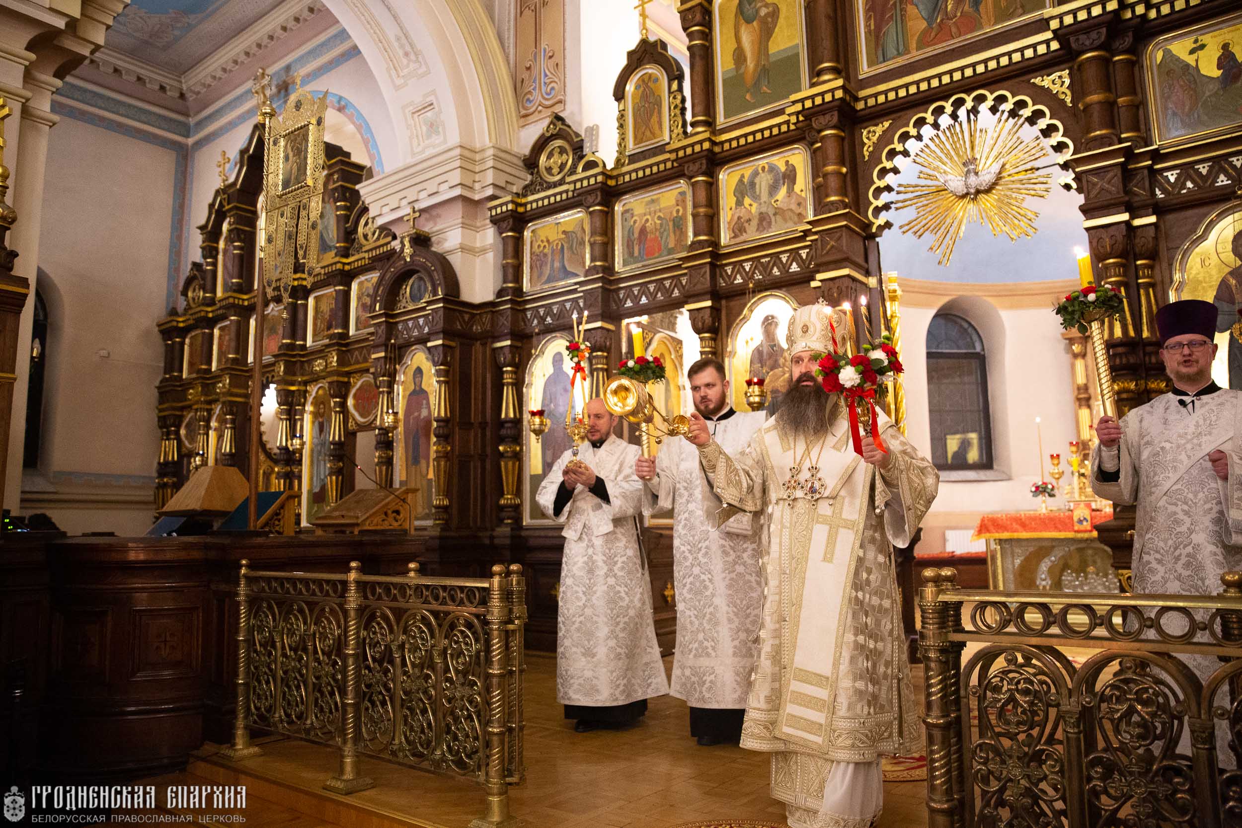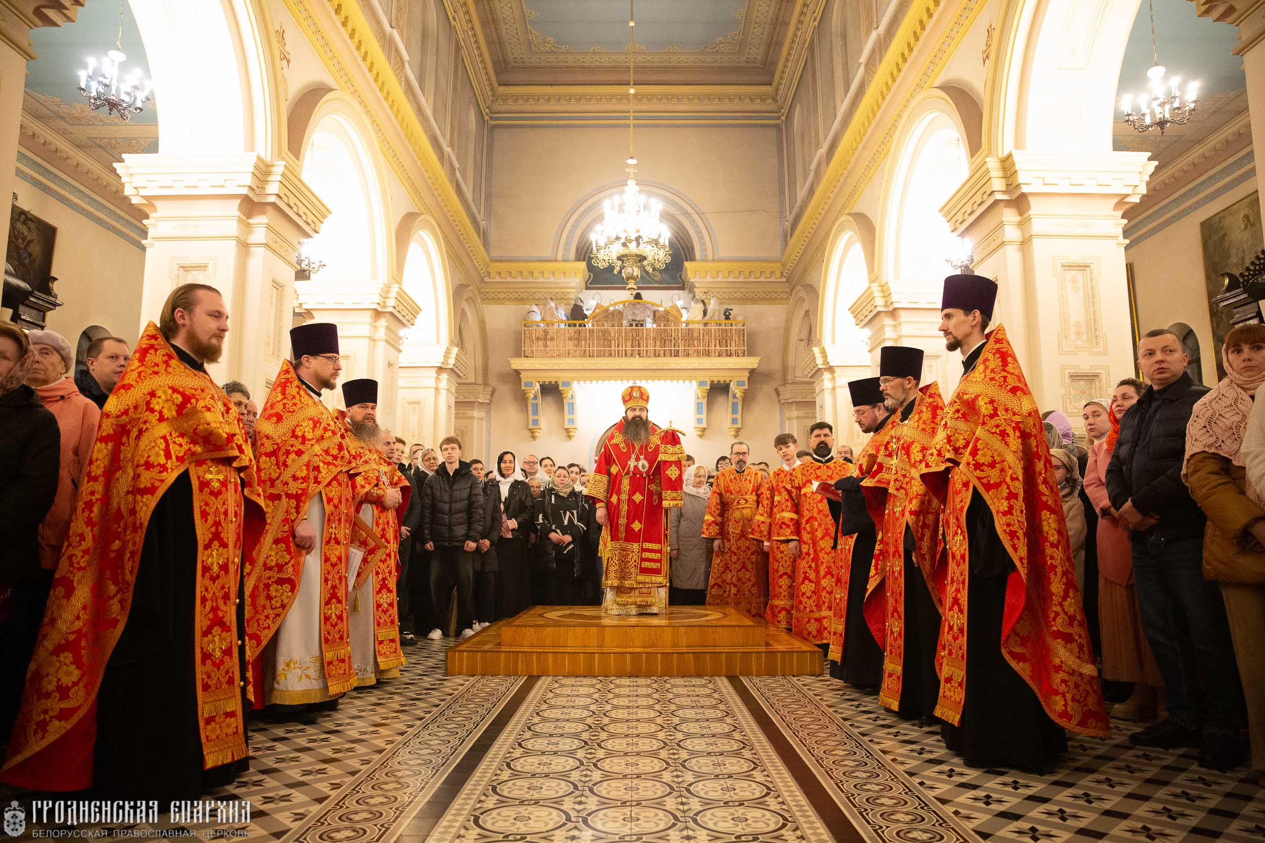 Его Высокопреосвященству сослужили: протоиерей Григорий Беляцкий, настоятель кафедрального собора Покрова Пресвятой Богородицы; иерей Александр Гук, руководитель отдела по церковной благотворительности и социальному служению Гродненской епархии; клирики кафедрального собора.
