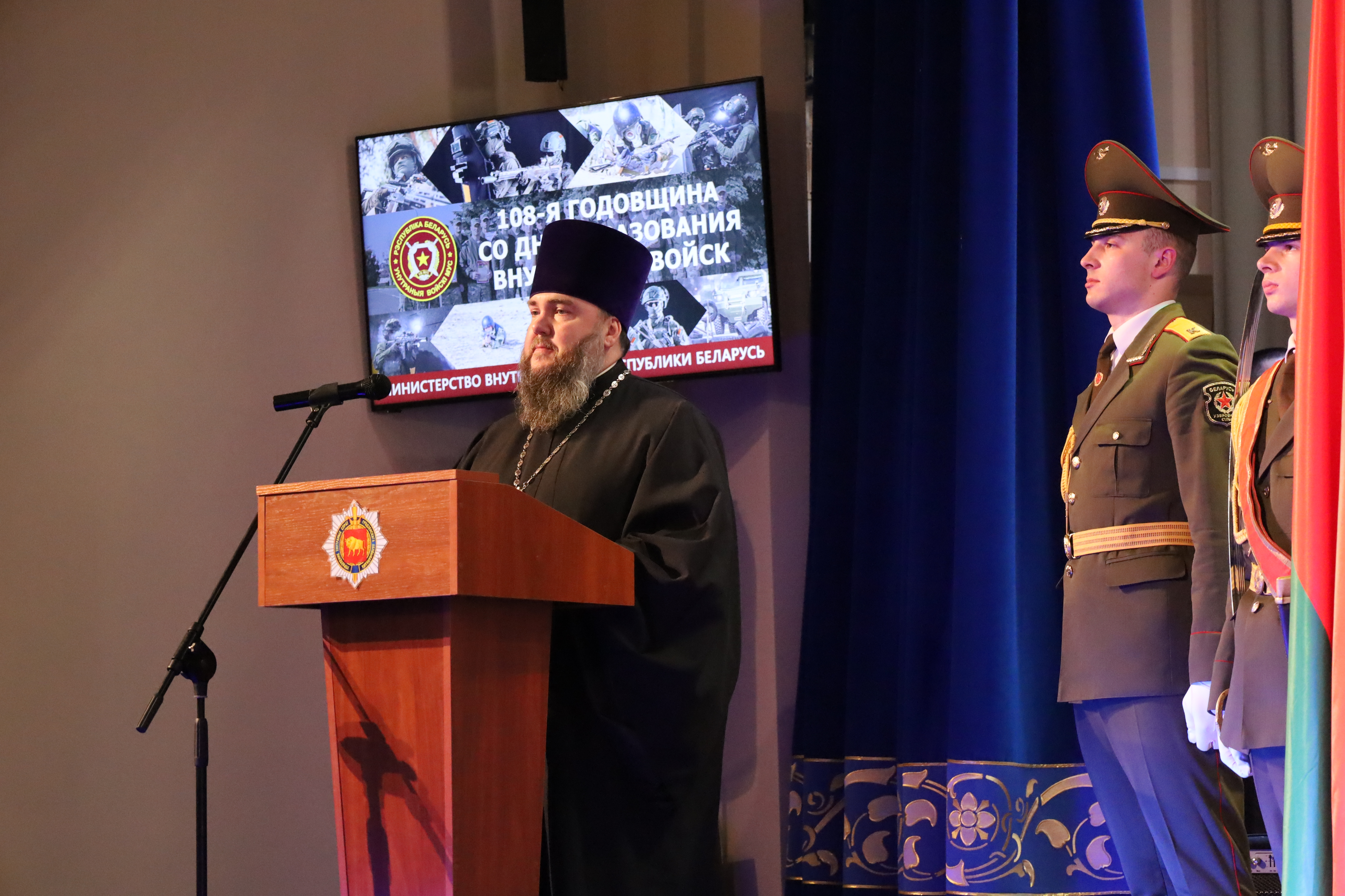 17 марта секретарь Гродненской епархии протоиерей Николай Лабынько и руководитель отдела Гродненской епархии по взаимодействию с Вооружёнными Силами и другими воинскими формированиями протоиерей Александр Казакевич приняли участие в торжественном мероприятии, посвящённом 108-й годовщине со дня образования внутренних войск Министерства внутренних дел Республики Беларусь, которое состоялось в УВД Гродненского облисполкома.
